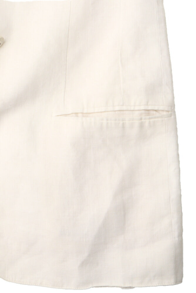 Gebrauchte Jacke, Ohne Kragen, Leinen, Weiß, Goldfarbene Metallteile, Gebraucht