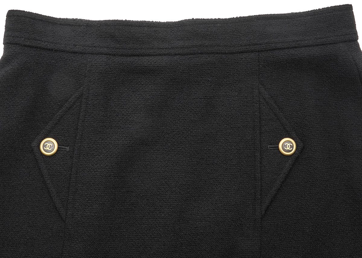 Werten Sie Ihre Garderobe mit dem exquisiten CHANEL Coco Button Skirt Bottoms 40 Black One Piece Brand Apparel auf. Dieser atemberaubende Rock aus einer luxuriösen Mischung aus 88 % Wolle und 12 % Polyamid strahlt nicht nur zeitlose Eleganz aus, sondern bietet auch außergewöhnlichen Komfort den ganzen Tag über.