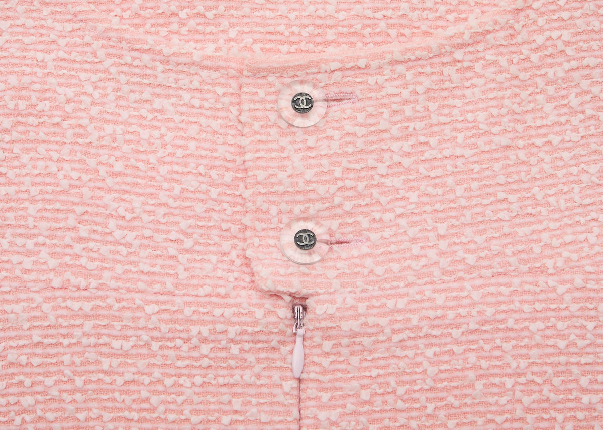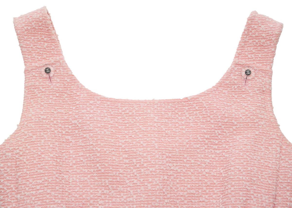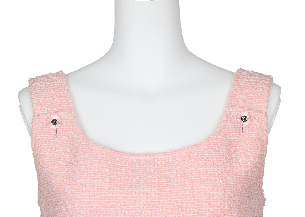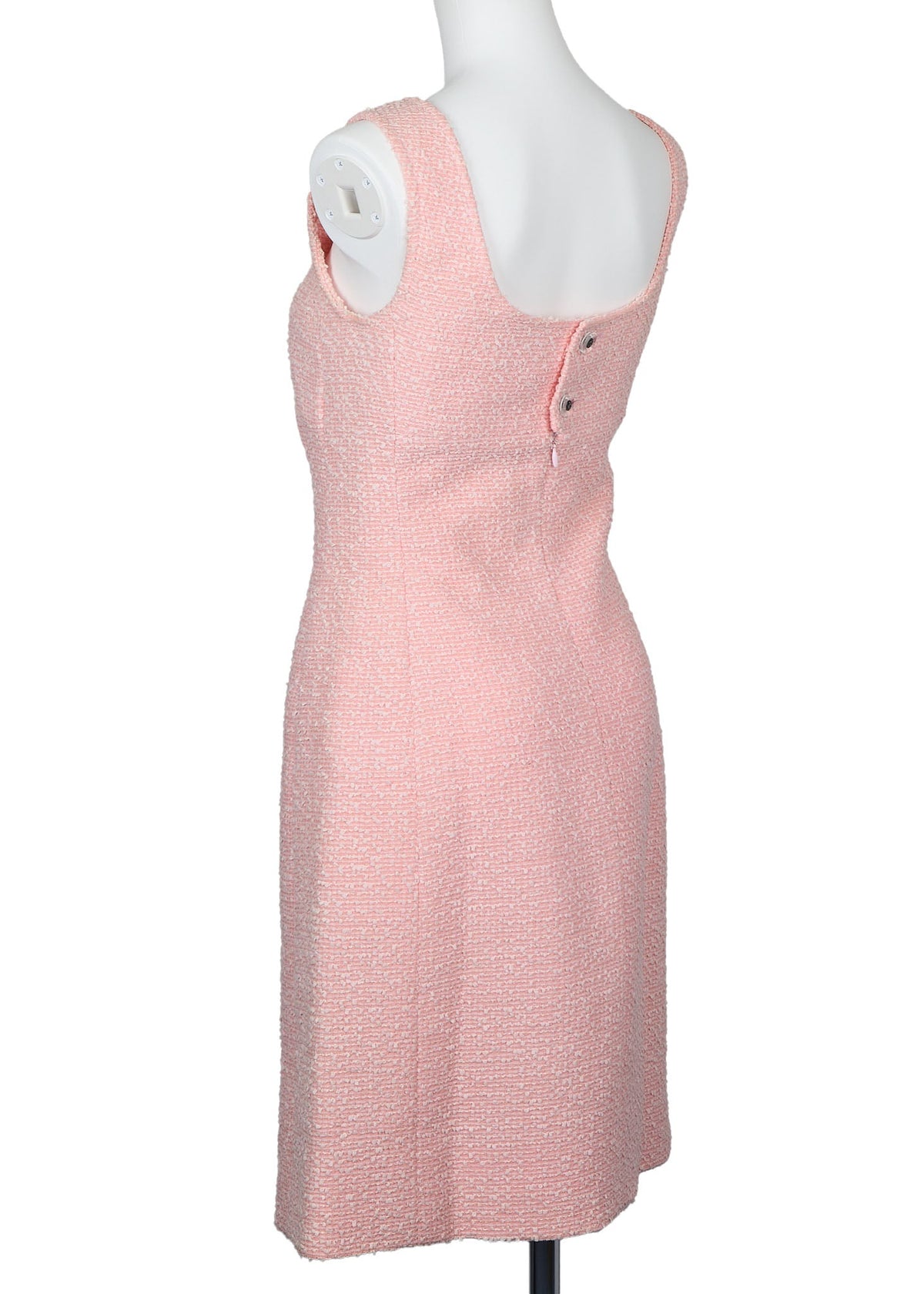 Werten Sie Ihre Garderobe mit dem atemberaubenden CHANEL Coco Button Sleeveless Dress 38 in einem herrlichen Rosaton auf. Dieses exquisite Stück aus einer luxuriösen Mischung aus 51 % Wolle und 33 % Nylon vereint Komfort und Stil und ist die perfekte Ergänzung für jedes trendige Ensemble.
