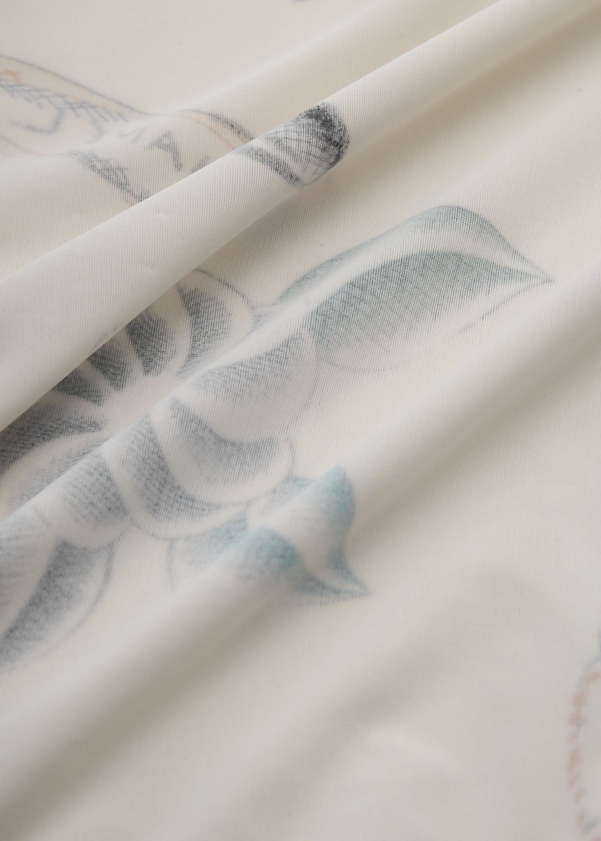 Gebrauchtes T-Shirt, Cropped, Total Pattern, Nylon-Spandex-Mischung, Weiß, Goldfarbene Hardware, Gebraucht