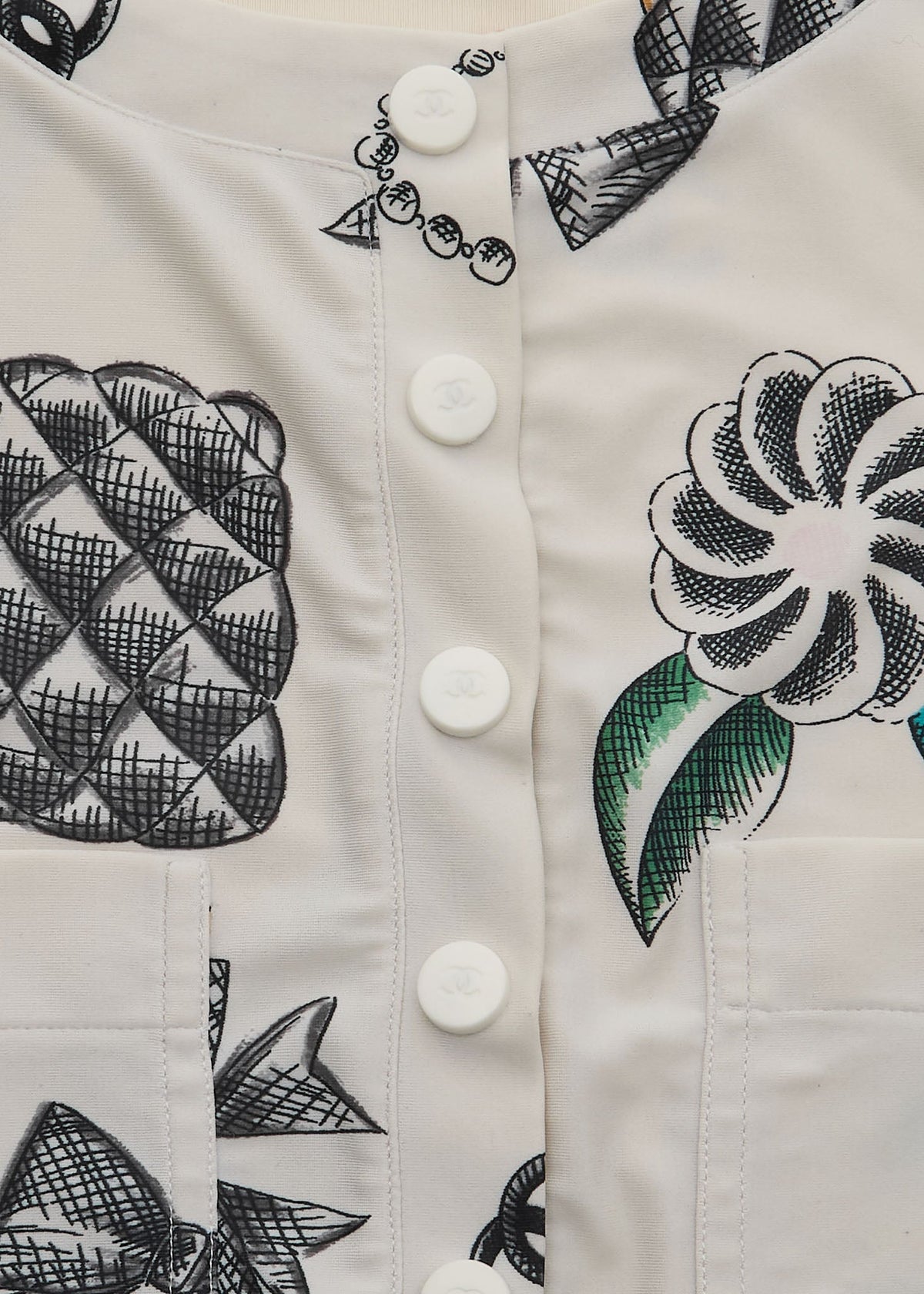 Werten Sie Ihre Garderobe mit den CHANEL Coco Button Total Pattern Cropped Length Tops auf. Dieses atemberaubende Stück vereint Luxus und Komfort und ist somit ein unverzichtbares Accessoire für jede zukunftsweisende Kollektion. Hergestellt aus einer hochwertigen Mischung aus Nylon (78 %) und Elasthan (22 %) , besticht dieses kurze T-Shirt durch sein weiches und dehnbares Material, das sich an den richtigen Stellen an Ihren Körper schmiegt.