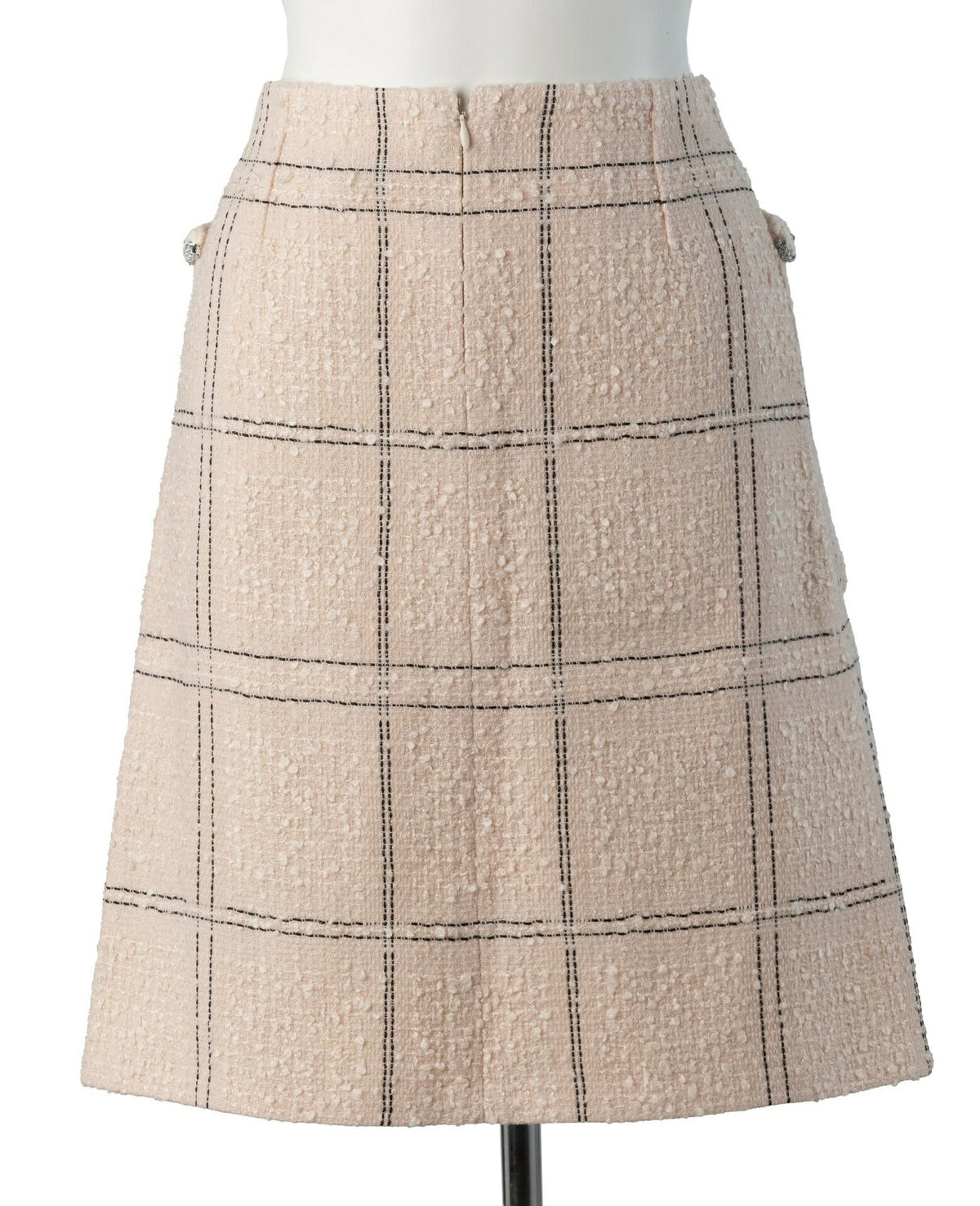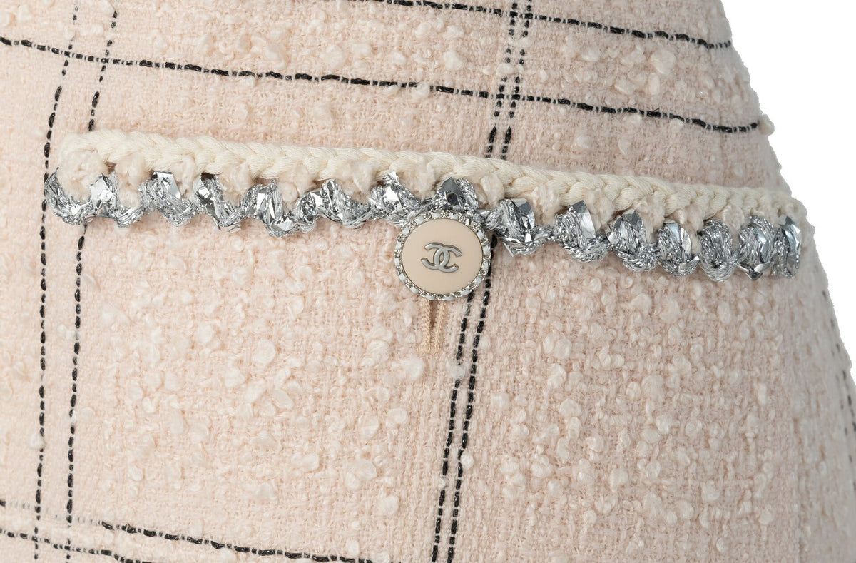 Gebrauchter Rock, Coco-Knopf, Tweed, Wolle, Rosa, Silberfarbene Hardware, Gebraucht