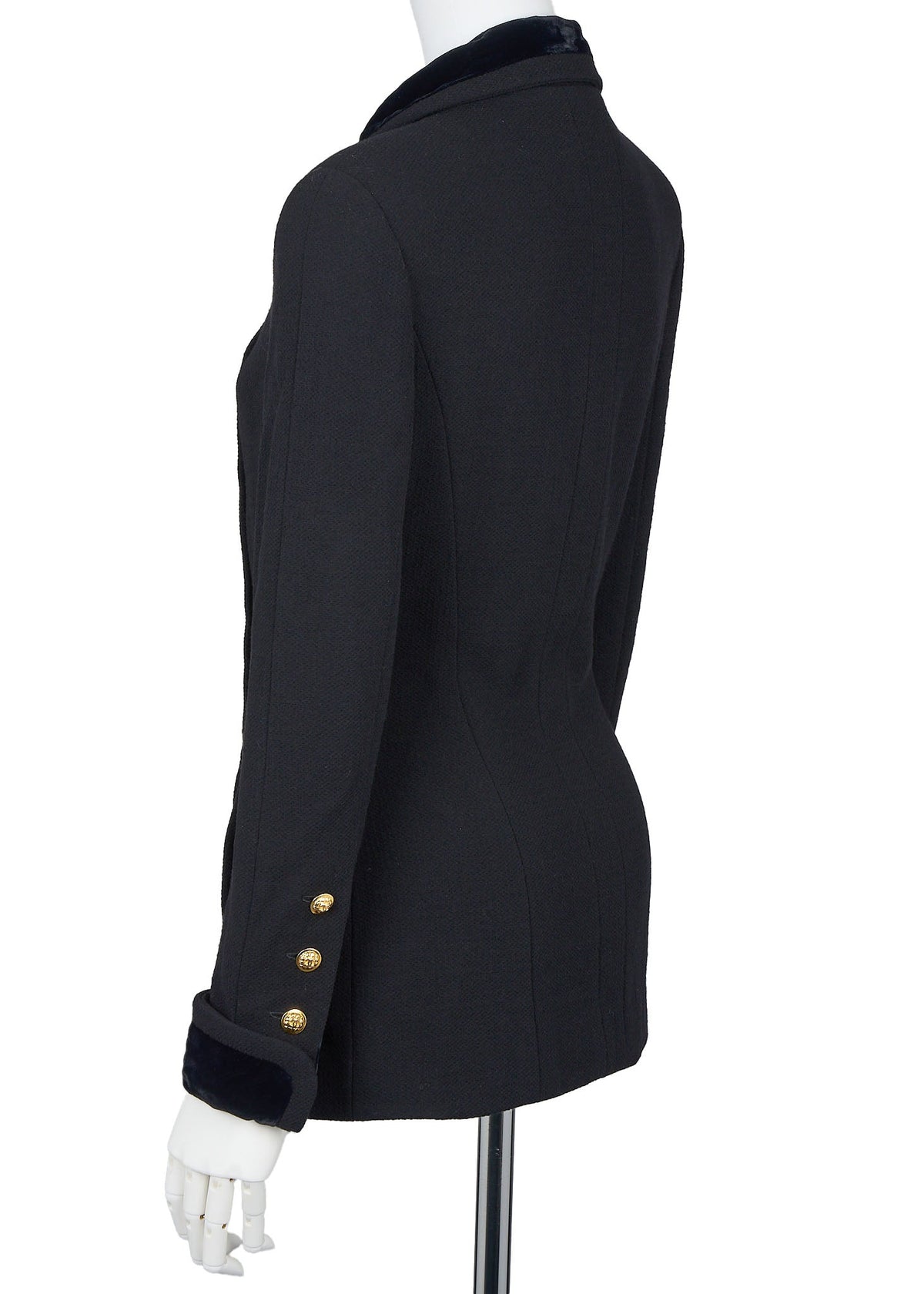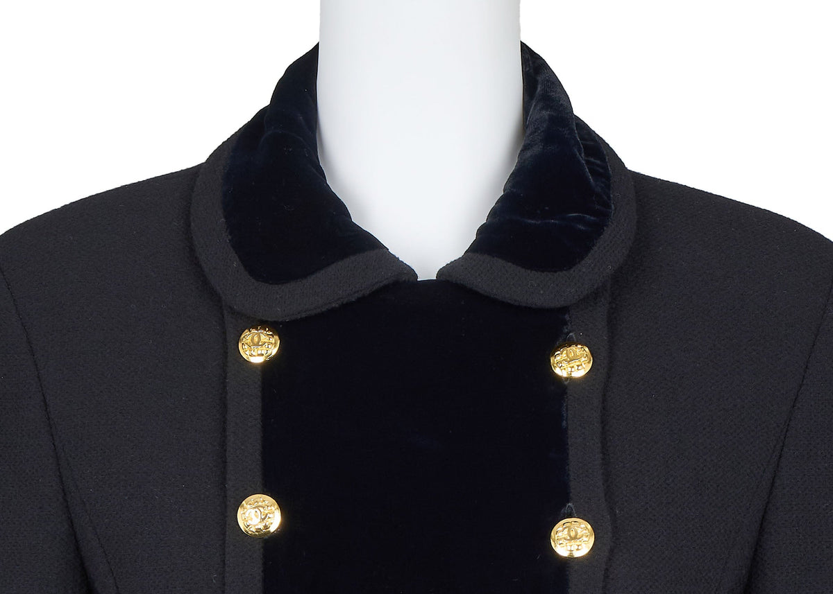 Ob Sie zu einem Geschäftstreffen oder zum Ausgehen unterwegs sind – die CHANEL Coco Button Tweed Velvet Switching Jacket lässt Sie auffallen. Verpassen Sie nicht die Gelegenheit, Ihren Stil mit diesem zeitlosen Oberbekleidungsstück zu unterstreichen.