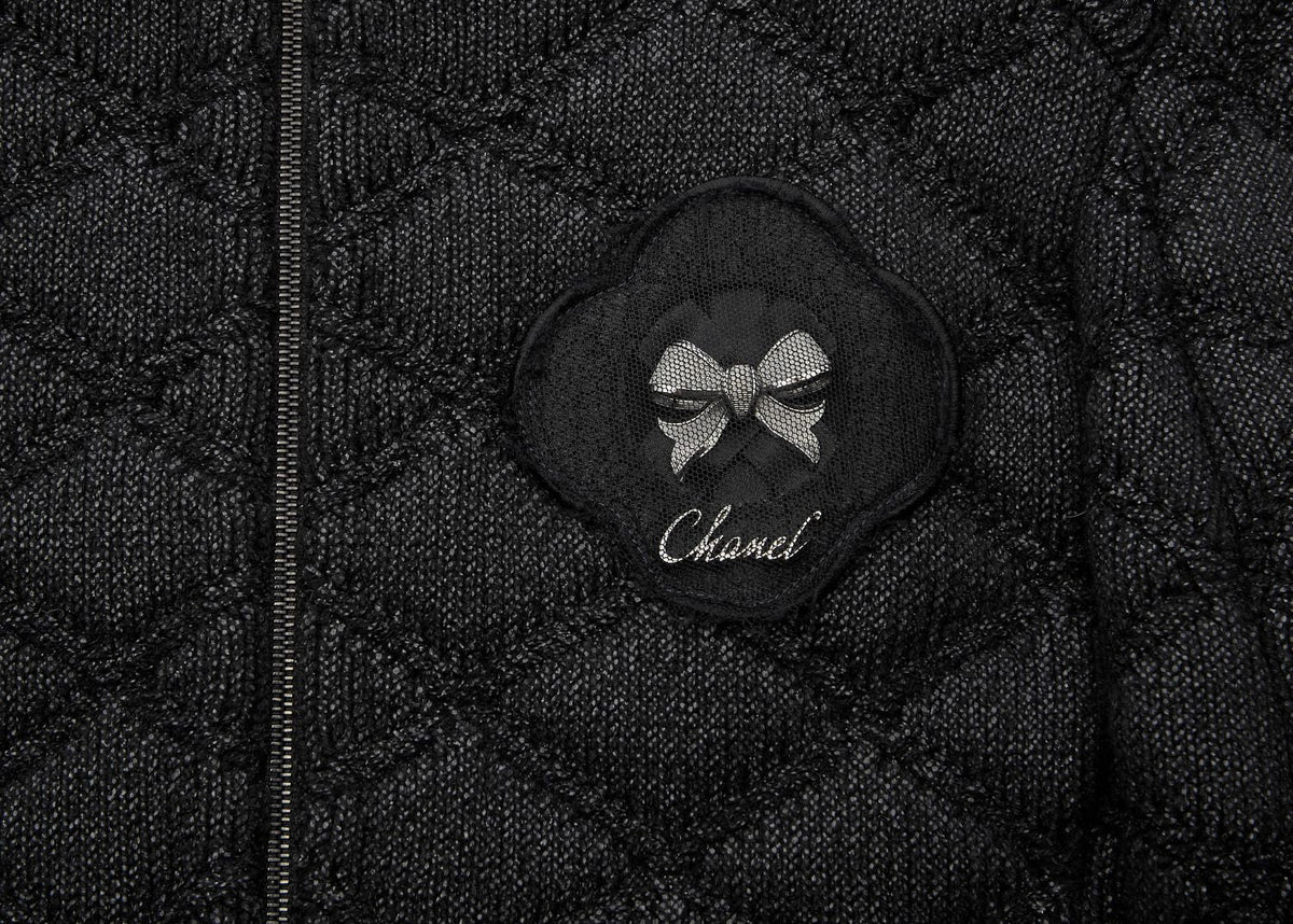 Entdecken Sie die Eleganz des CHANEL Coco Charm Jacket Blouson 36 , ein atemberaubendes Stück, das Luxus und Funktionalität mühelos vereint. Diese schwarze, langärmelige Cut-and-Sew-Oberbekleidung aus einer hochwertigen Mischung aus 92 % Wolle und 8 % Nylon ist für alle gedacht, die High Fashion zu schätzen wissen.