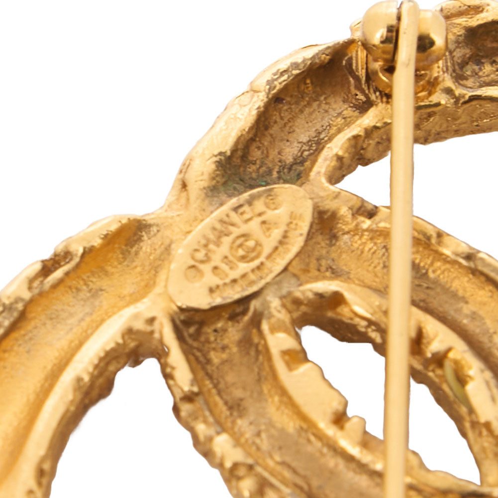 Erweitern Sie Ihre Accessoire-Kollektion mit der CHANEL Coco Mark Aragus Pattern Fringe Brooch GP 93A . Diese atemberaubende vergoldete Damenbrosche ist nicht nur ein Schmuckstück; sie ist ein Statement für Eleganz und Raffinesse.