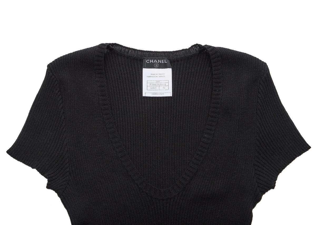 Werten Sie Ihre Garderobe mit dem exquisiten CHANEL Coco Mark Knit Lace Kurzarm-Top Cut-and-Sew T-Shirt 34 Black Brand Apparel auf . Dieses atemberaubende Stück ist nicht nur ein Statement von Luxus, sondern auch ein Beweis für die renommierte Handwerkskunst von CHANEL. Hergestellt aus einer hochwertigen Mischung aus 80 % Baumwolle und 20 % Nylon , fühlt es sich weich auf der Haut an und bietet gleichzeitig Haltbarkeit und Komfort.