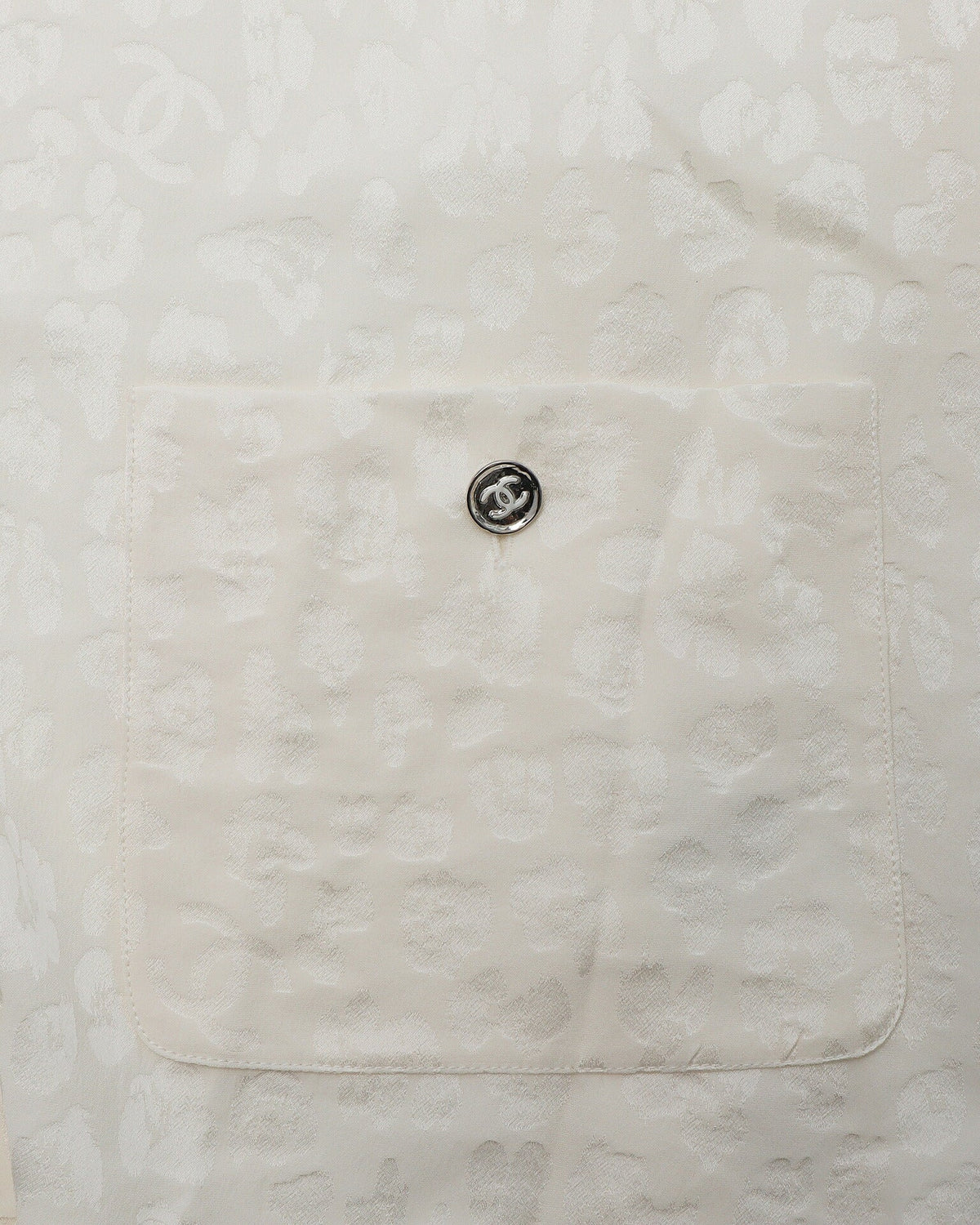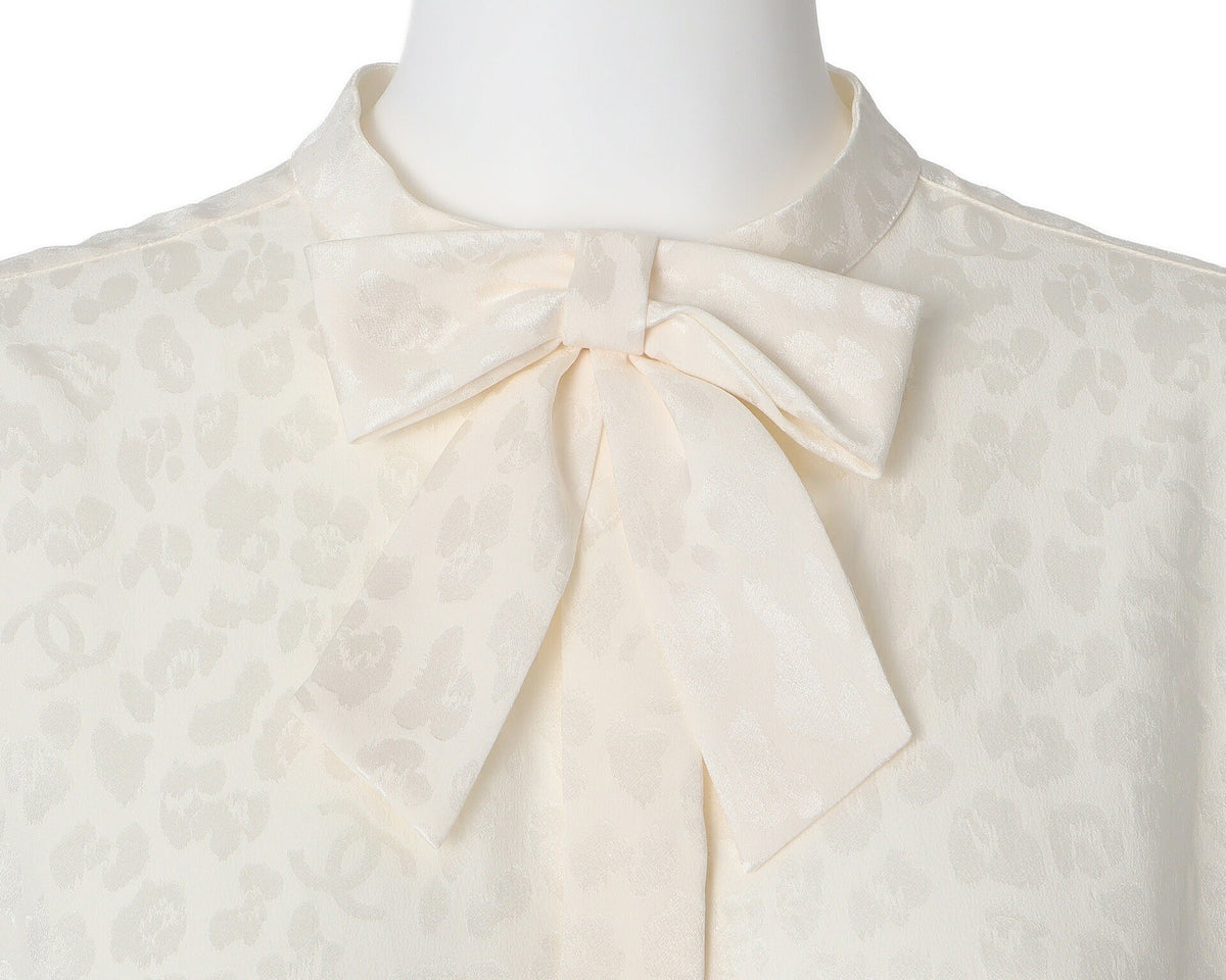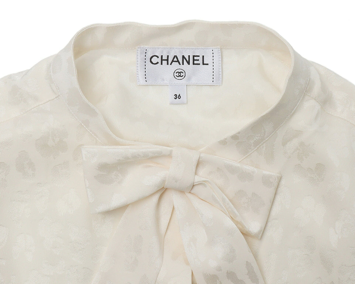 Verpassen Sie nicht die Gelegenheit, ein Stück Eleganz von CHANEL zu besitzen – legen Sie das CHANEL Coco Mark Leopard Ribbon Blouse Long Sleeve Shirt 36 Ivory noch heute in Ihren Einkaufswagen und feiern Sie Ihren schicken neuen Look!