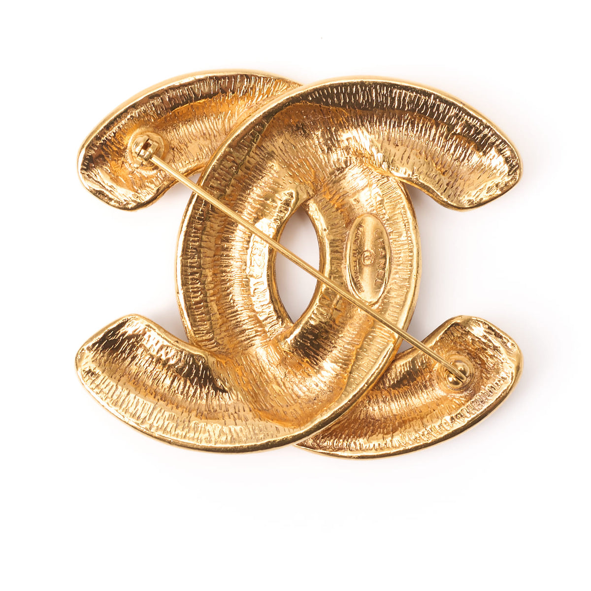 Gebrauchte Brosche, Coco Mark, Matelassé, vergoldet, Gold, goldfarbene Hardware, gebraucht