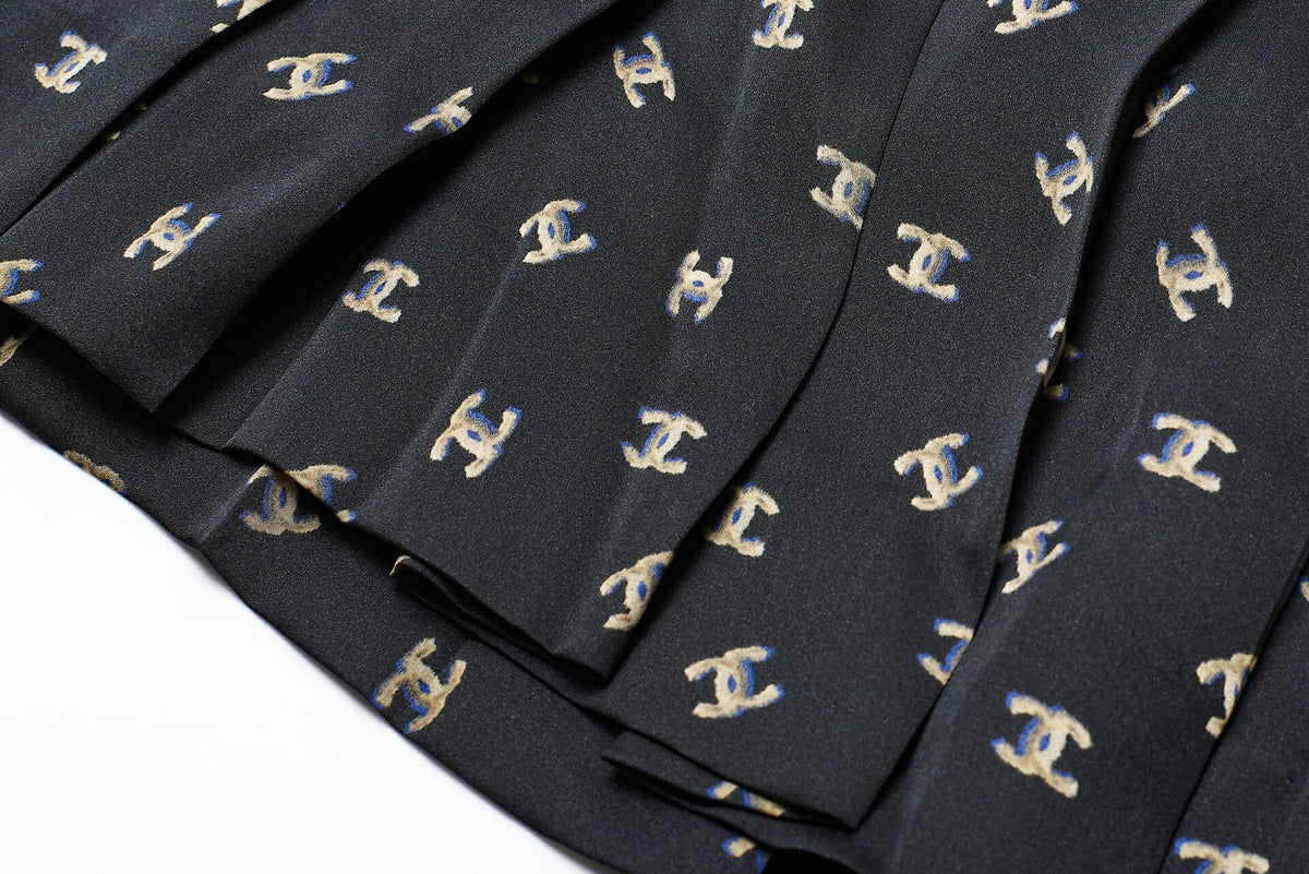 Werten Sie Ihre Garderobe mit dem exquisiten CHANEL Coco Mark Plissee-Einteilerkleid, Oberteil und Rock in der Größe 36 in Schwarz auf . Dieses atemberaubende Stück zeigt die unvergleichliche Handwerkskunst, die für die Marke CHANEL steht, und ist eine raffinierte und zeitlose Ergänzung Ihrer Kollektion.