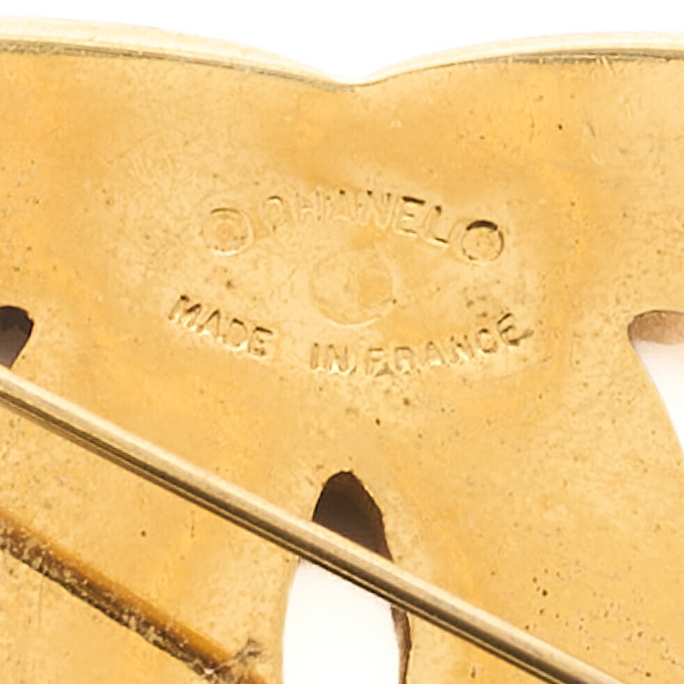 Gebrauchte Brosche Coco Mark Strass vergoldet goldfarbene Hardware gebraucht