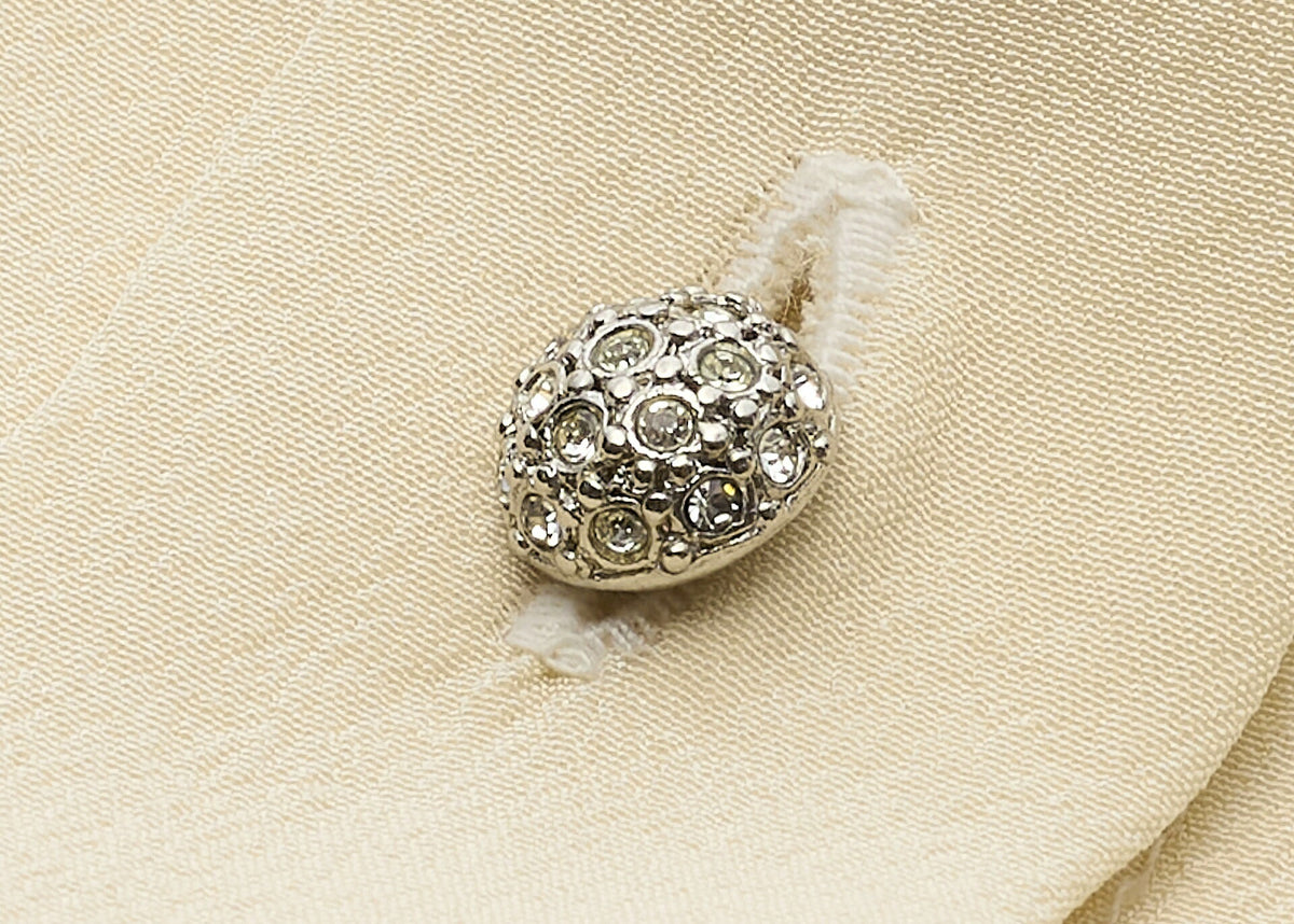 Gebrauchte Bluse, Kurzarm, Schnittmuster, 100 % Seide, Beige, goldfarbene Metallteile, gebraucht