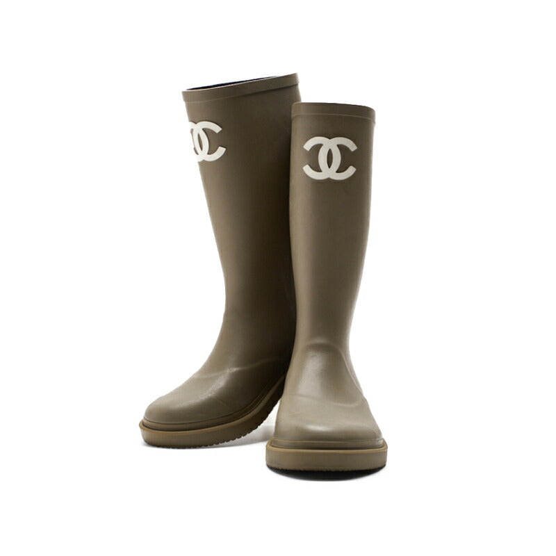 Diese Stiefel sind in Größe 36 (EU) mit einer Länge von ca. 23 cm erhältlich. Ihr elegantes Design und das ikonische CHANEL-Logo sorgen dafür, dass Sie auch bei Regen auffallen. Dank des leichten Gebrauchs erhalten Sie eine Premiummarke zu einem Bruchteil des Preises und sind damit eine ausgezeichnete Wahl für Modebegeisterte.