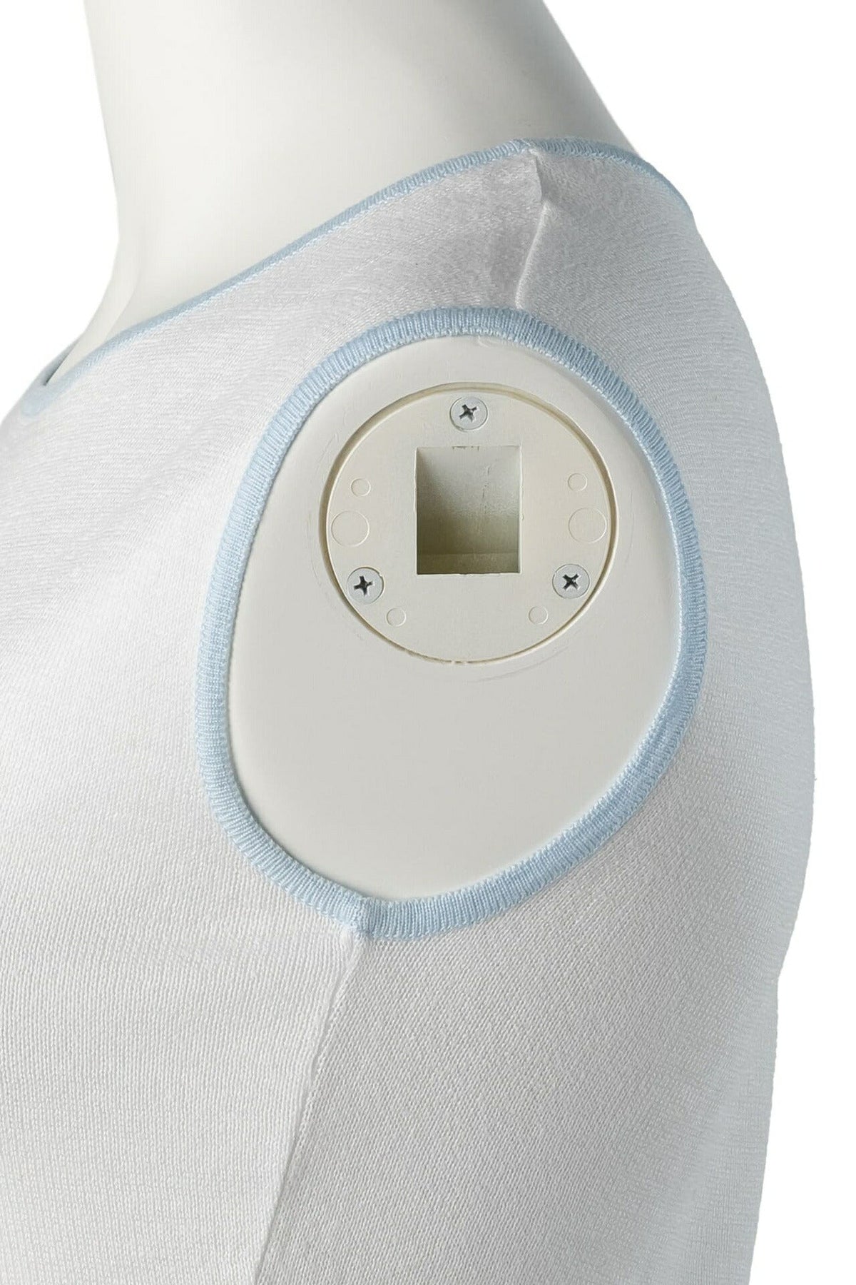 Gebrauchtes ärmelloses T-Shirt, Schnittmuster, Baumwolle, Weiß, silberfarbene Metallteile, gebraucht