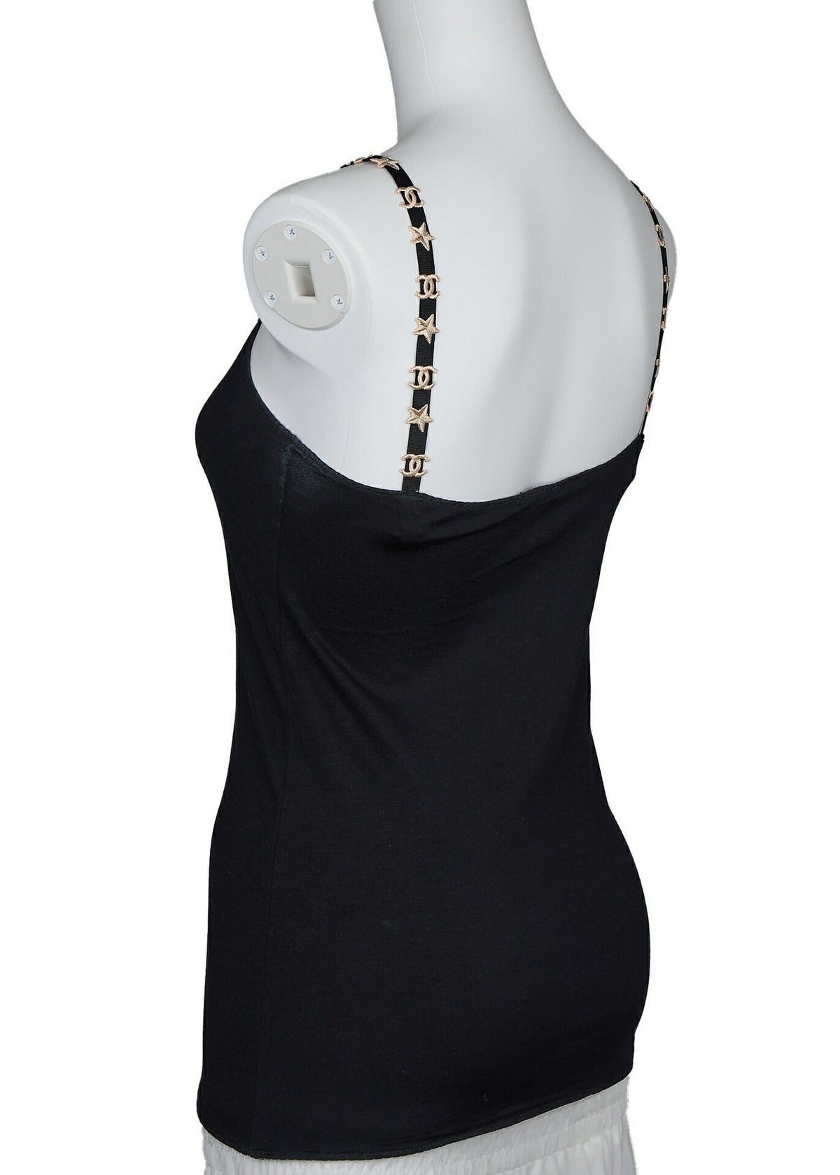 Verpassen Sie nicht die Chance, ein Stück CHANEL-Erbe zu besitzen. Ergänzen Sie Ihre Sammlung noch heute mit dem CHANEL Coco Mark Star Camisole Sleeveless Tops T-Shirt 38 Schwarz und erleben Sie die zeitlose Eleganz, die nur CHANEL bieten kann!