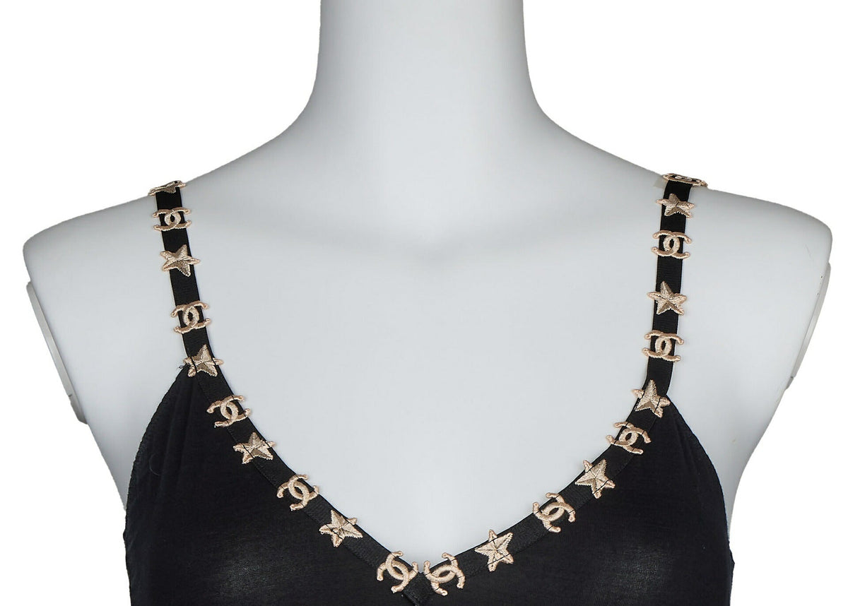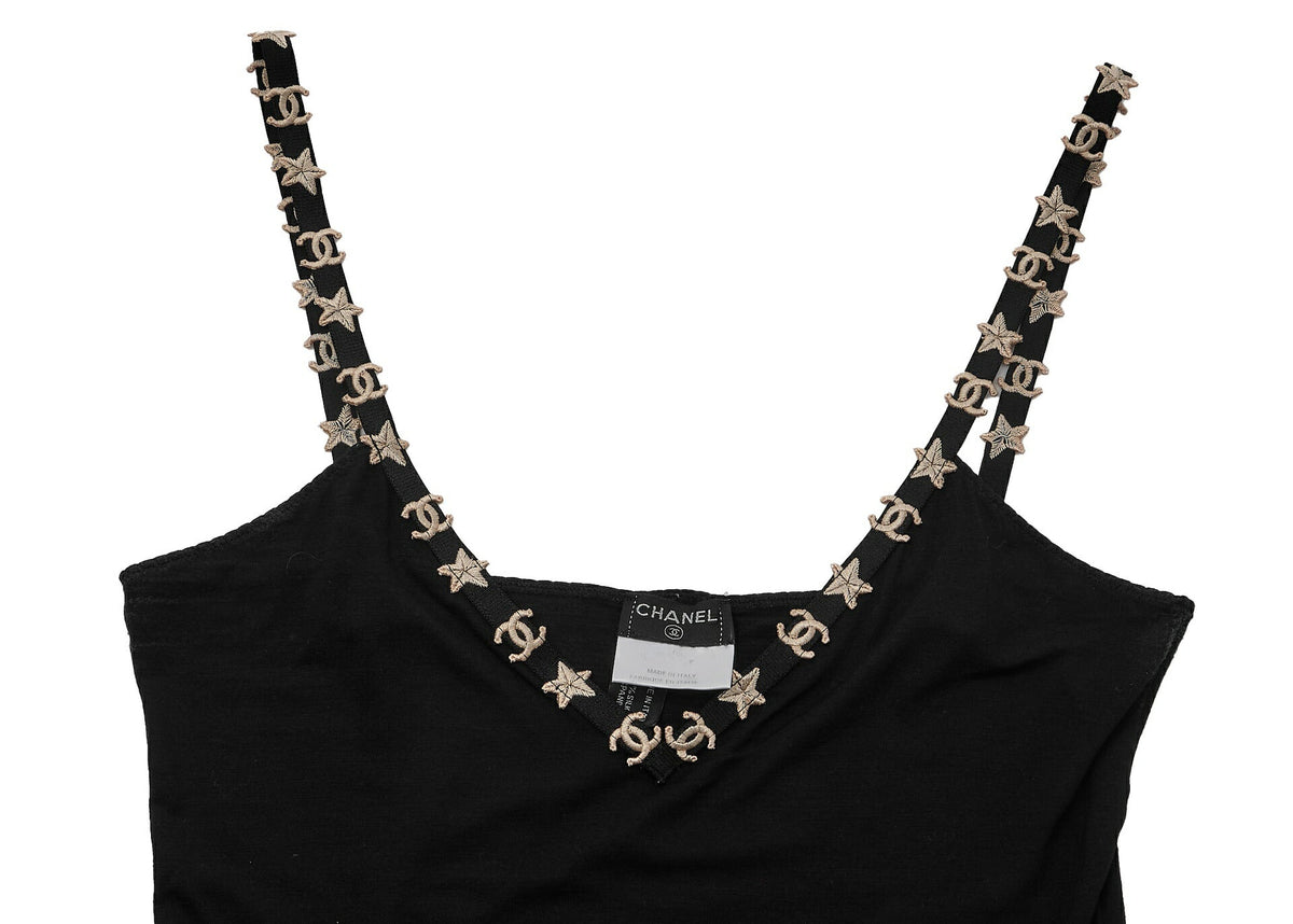 Werten Sie Ihre Garderobe mit dem exquisiten CHANEL Coco Mark Star Camisole Sleeveless Tops T-Shirt 38 Schwarz auf. Dieses atemberaubende Stück aus dem legendären Modehaus CHANEL vereint Eleganz und Komfort und ist somit ein Must-have für die Kollektion jeder modebewussten Person.