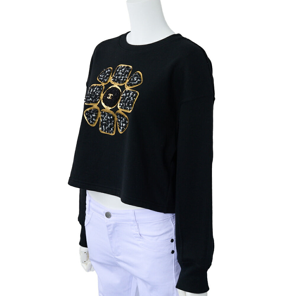 Werten Sie Ihre Garderobe mit dem atemberaubenden CHANEL Coco Mark Tweed Cropped Sweatshirt auf. Dieses exquisite Stück vereint Luxus und Komfort und ist ein Must-have für Modebegeisterte. Das Cropped Sweatshirt aus 100 % Baumwolle in klassischem Schwarz bietet Vielseitigkeit und lässt sich nahtlos vom Alltags- zum Abendlook kombinieren.