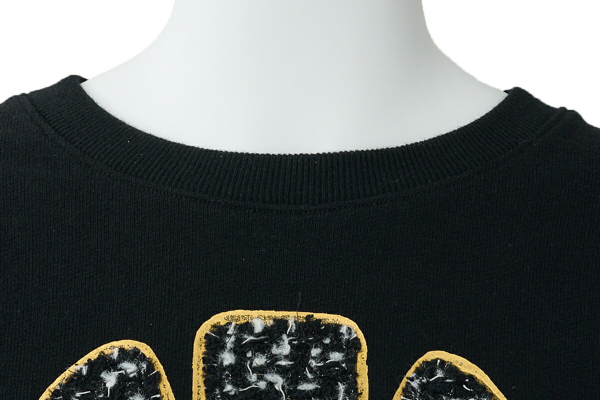 Pre-Owned Cropped Sweatshirt, Coco Mark, Tweed, Baumwolle, Schwarz, Pre-Owned