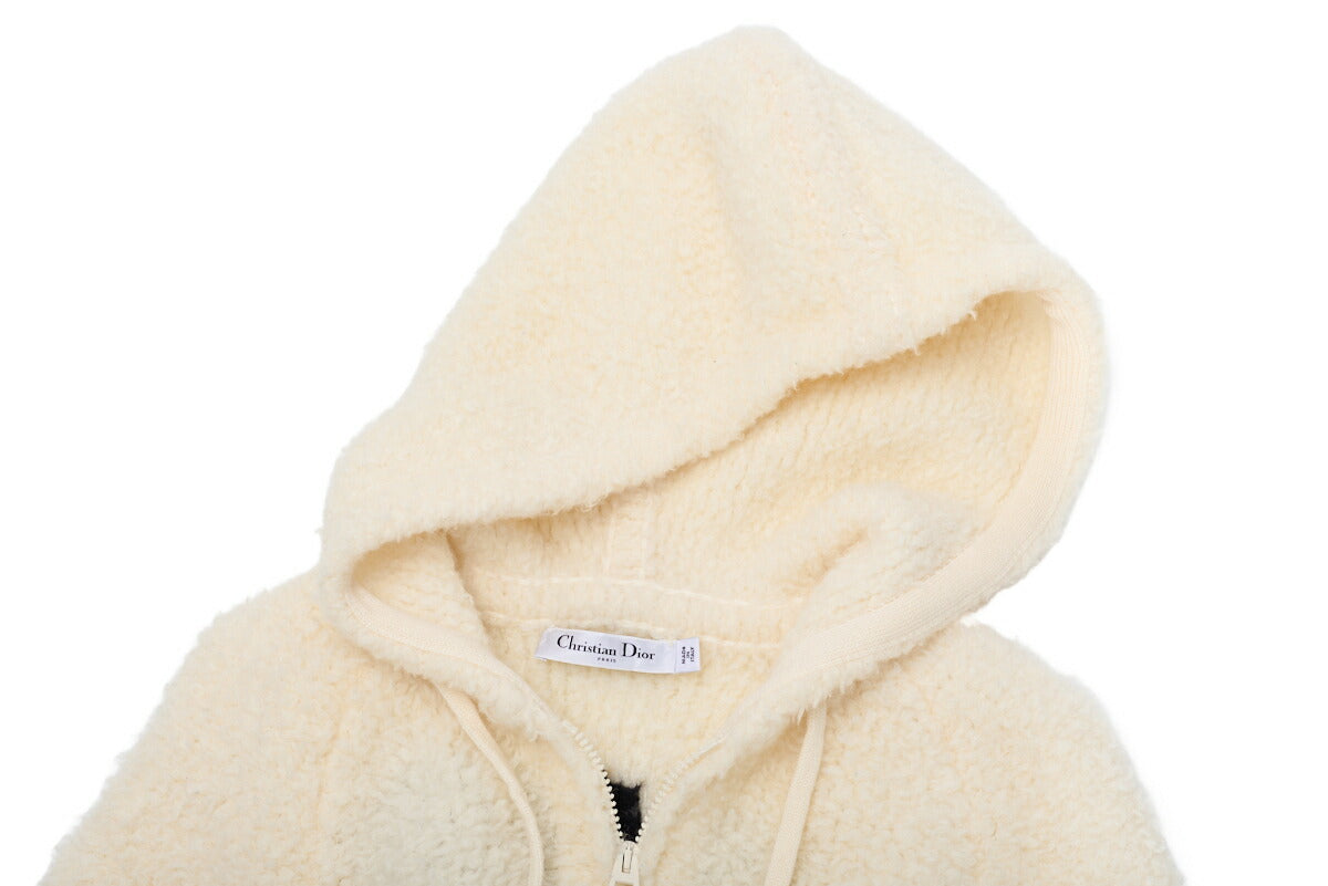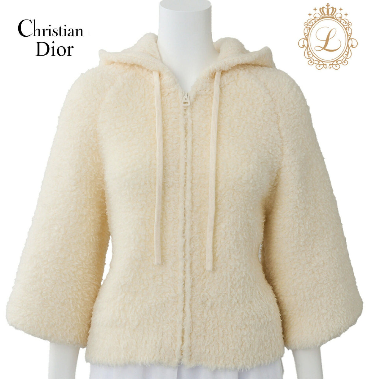 Pre-Owned Hoodie Knit Top, J'ADIOR 8 Jadiol Logo, Woll-Nylon-Mischung, Elfenbein, silberfarbene Hardware, Pre-Owned