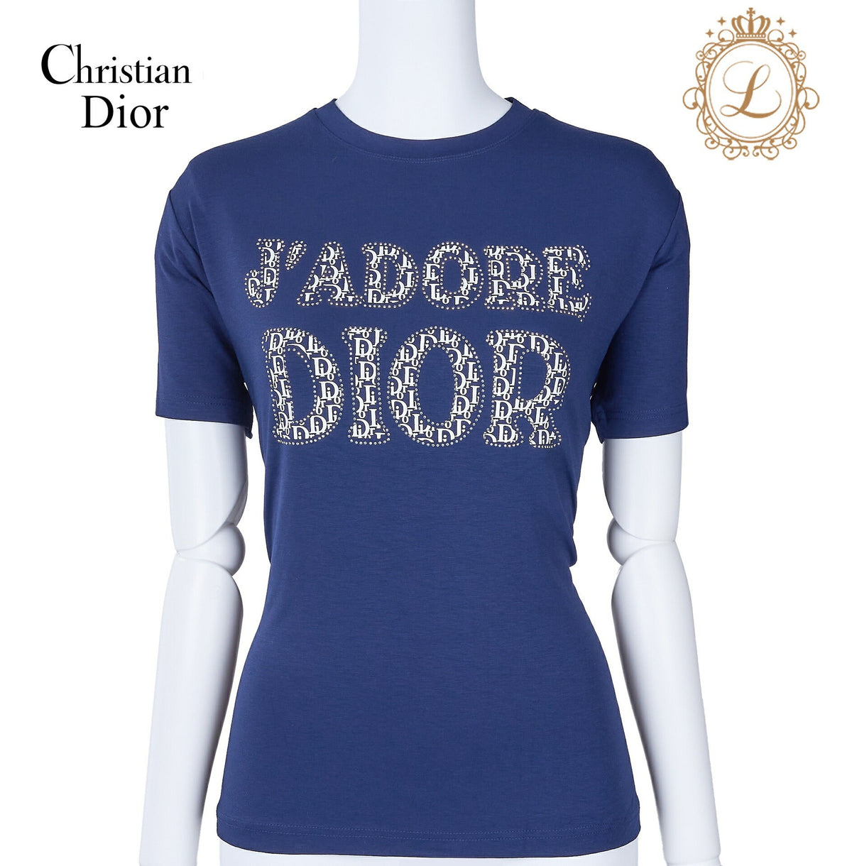 - Markantes Dior J'adore-Logo: Zeigen Sie Ihre Liebe zur Haute Couture mit diesem ikonischen Logo, einem Markenzeichen der Raffinesse.