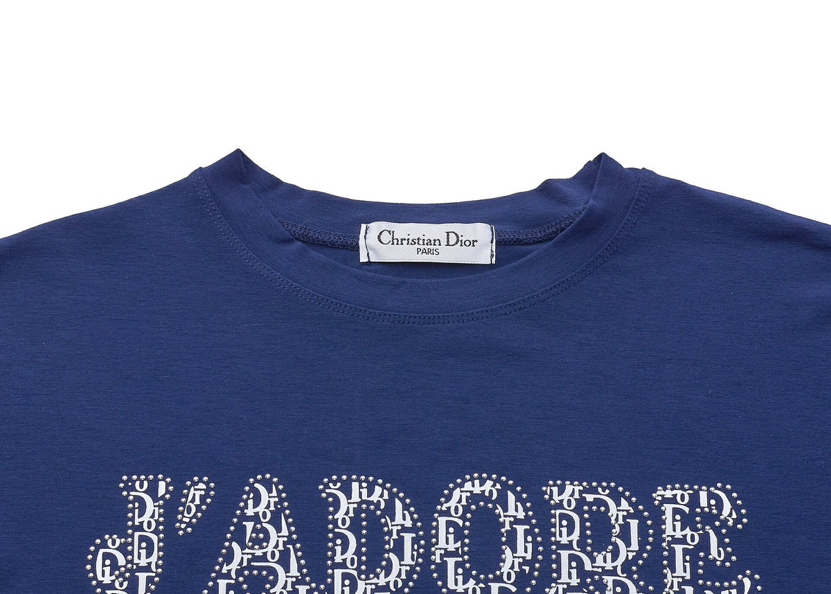 Veredeln Sie Ihre Freizeitgarderobe mit dem atemberaubenden Dior J'adore Logo T-Shirt . Dieses exquisite Kurzarm-Cut-and-Sew-Top besticht durch eine luxuriöse Mischung aus 80 % Polyester und 20 % Elasthan und bietet Komfort und Elastizität für eine schmeichelhafte Passform. Die einzigartige Farbgebung in Marineblau und Weiß ist perfekt für müheloses Styling und macht es zu einem unverzichtbaren Accessoire für jede modebewusste Frau.