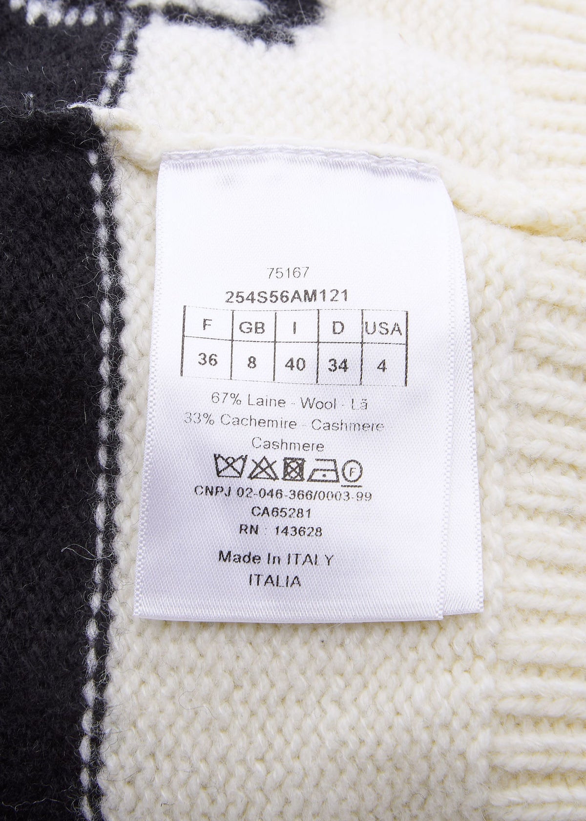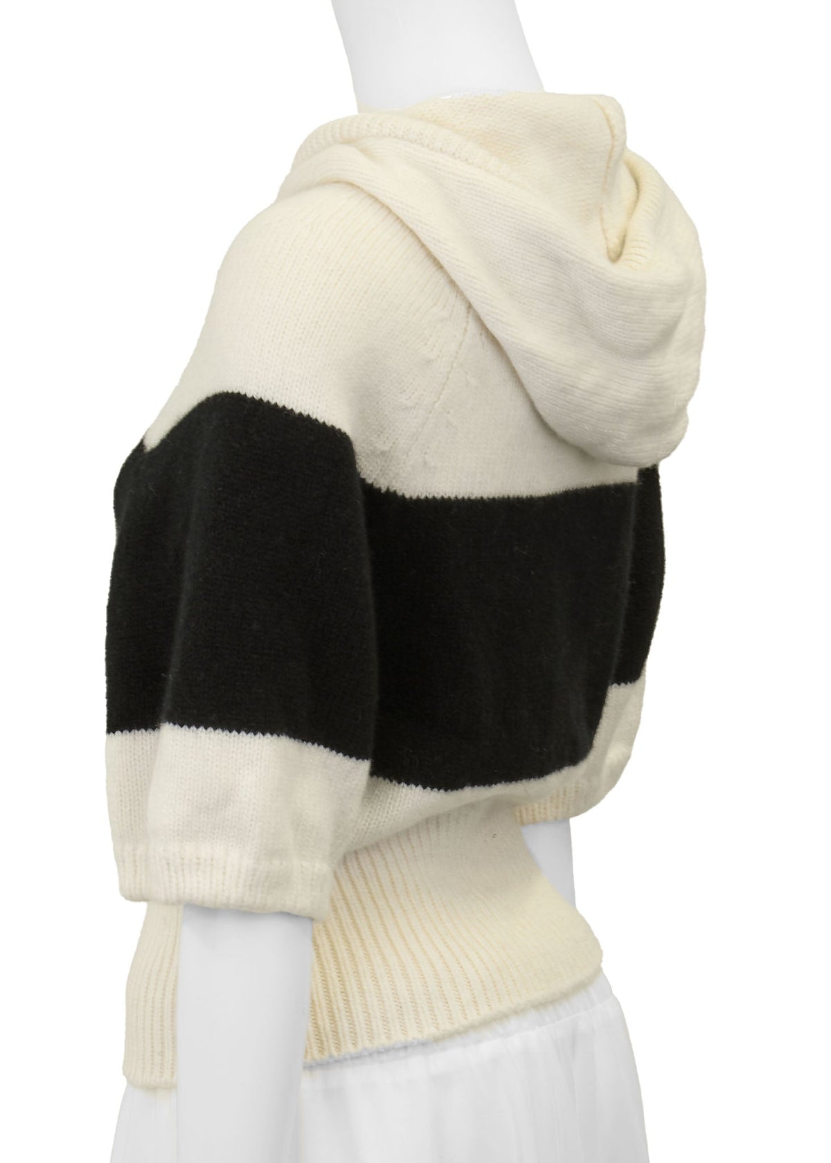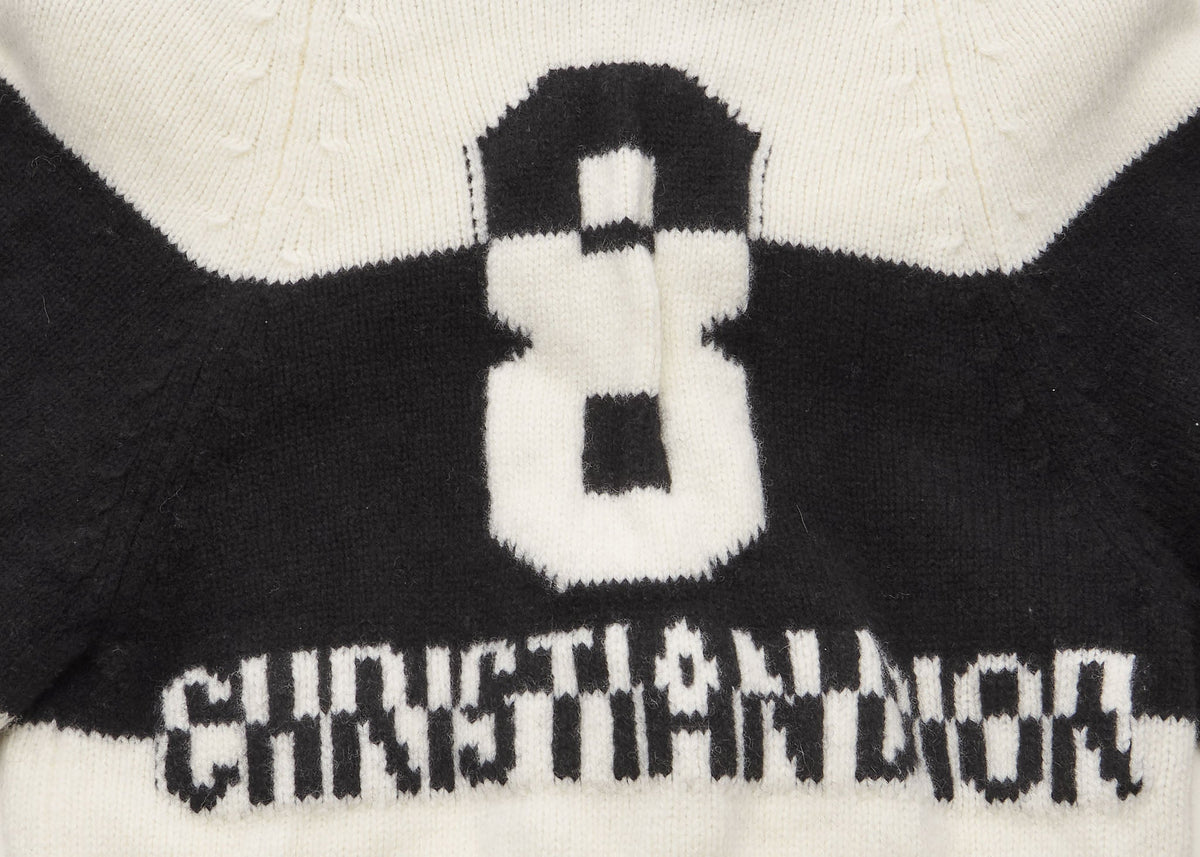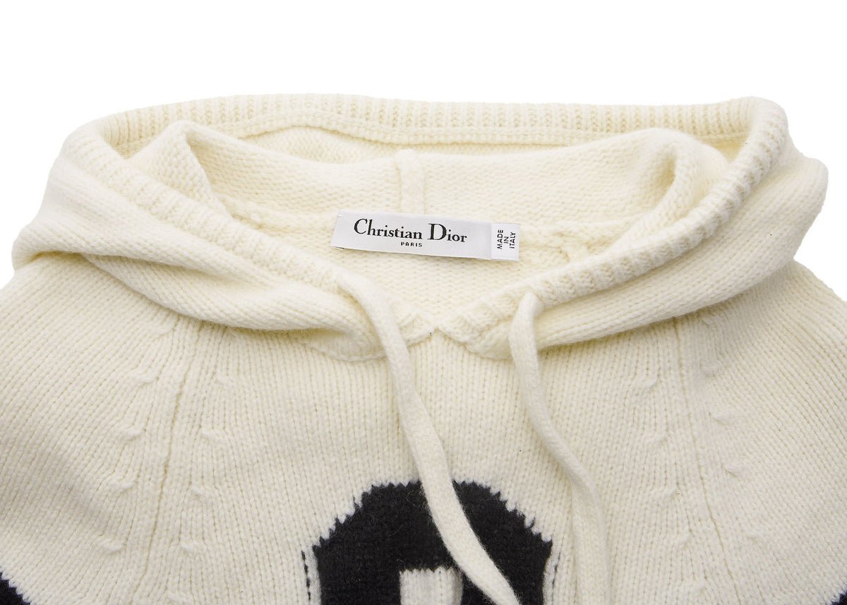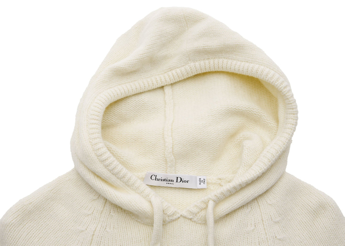 Werten Sie Ihre Garderobe mit dem exquisiten Dior Knit Hoodie 40 Ivory & Black auf – eine atemberaubende Mischung aus Luxus und Stil. Präzise gefertigt aus einer hochwertigen Mischung aus 67 % Wolle und 33 % Kaschmir bietet dieser Hoodie unvergleichlichen Komfort und Wärme und besticht gleichzeitig durch sein schickes Aussehen.