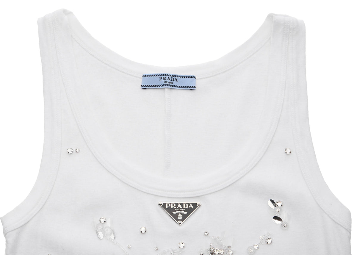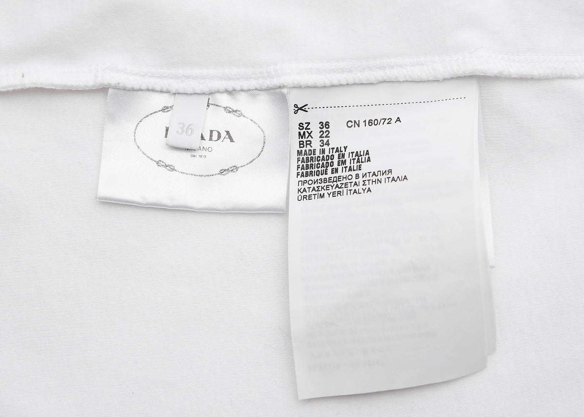 Werten Sie Ihre Garderobe mit dem PRADA Jerseykleid One Piece 36 auf. Dieses atemberaubende weiße ärmellose Kleid aus 100 % hochwertiger Baumwolle vereint Komfort mit schickem Flair. Sein einzigartiges Cut-and-Sew-Design betont Ihre Silhouette und macht es perfekt für legere Anlässe und gehobene Events.
