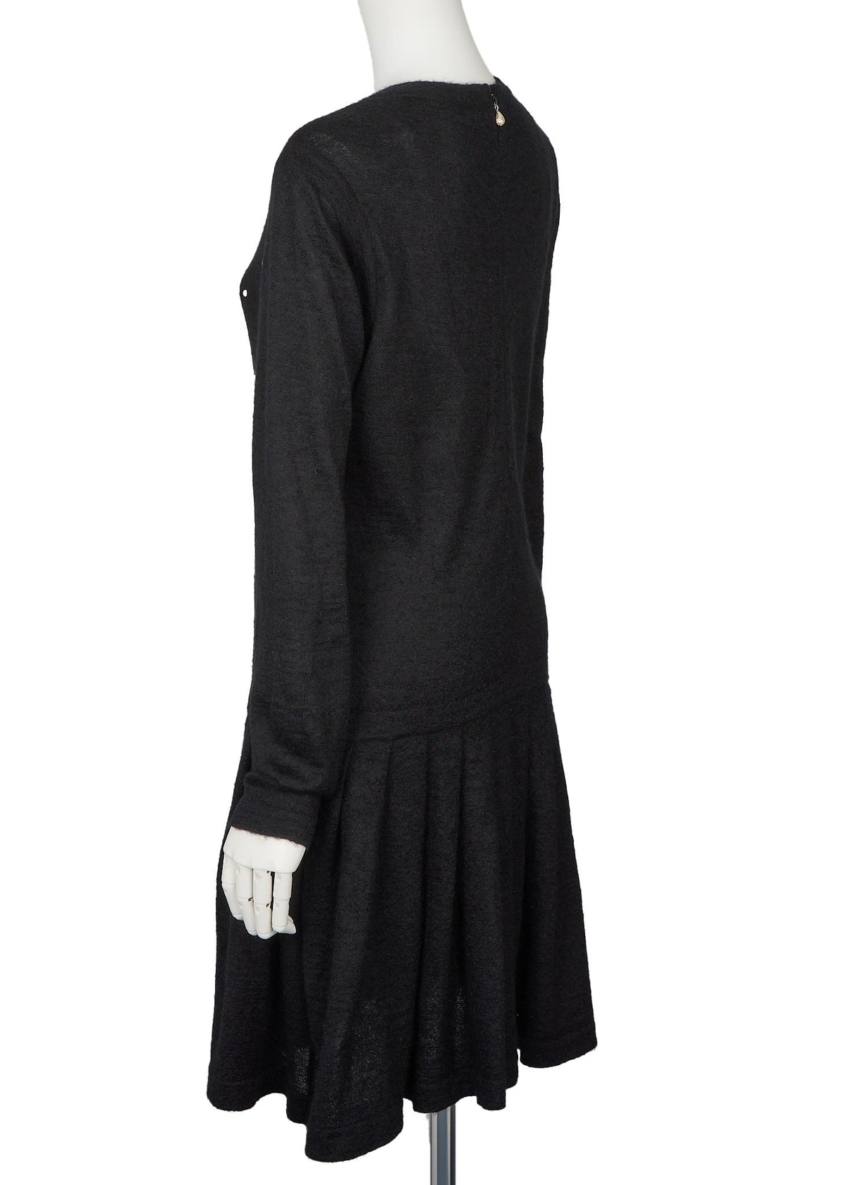 Pre-Owned Kleid, Plissee Langarm, Mohair Kaschmir Mischung, Schwarz, Pre-Owned