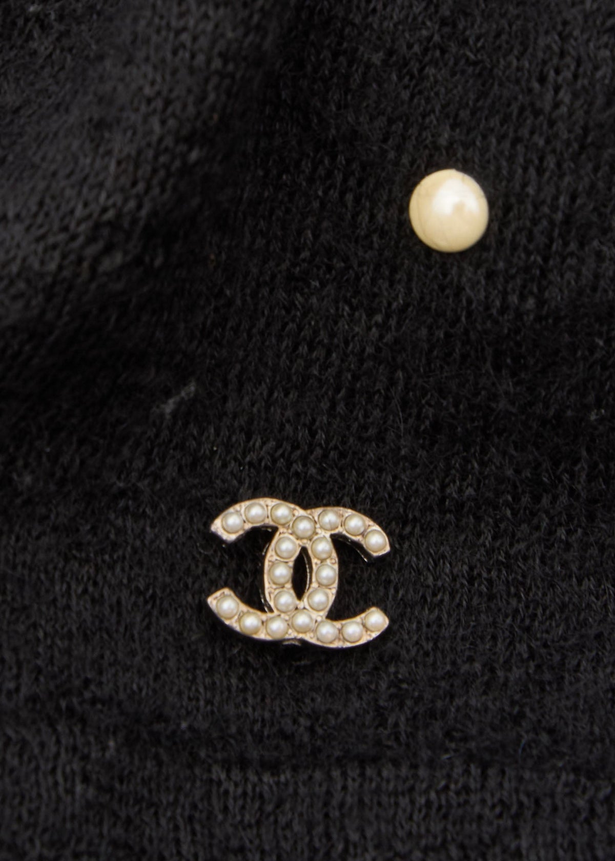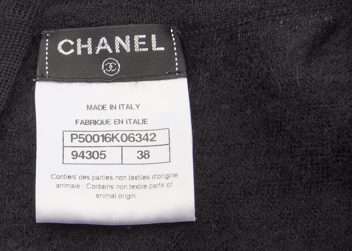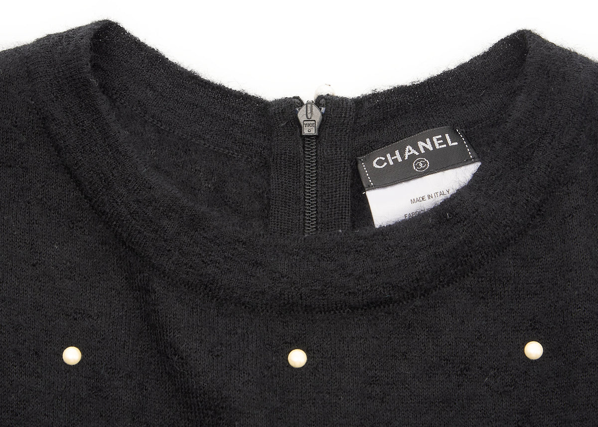 Werten Sie Ihre Garderobe mit dem exquisiten CHANEL Logo Pearl Dress 38 auf. Dieses atemberaubende Ensemble besteht aus einem plissierten Langarm-Top und einem schicken Rock. Gefertigt aus einer luxuriösen Mischung aus 70 % Mohair und 30 % Kaschmir , garantiert es höchsten Komfort und Stil. Die zeitlose schwarze Farbe macht es zu einer vielseitigen Wahl für jeden Anlass, von formellen Anlässen bis hin zu legeren Anlässen.