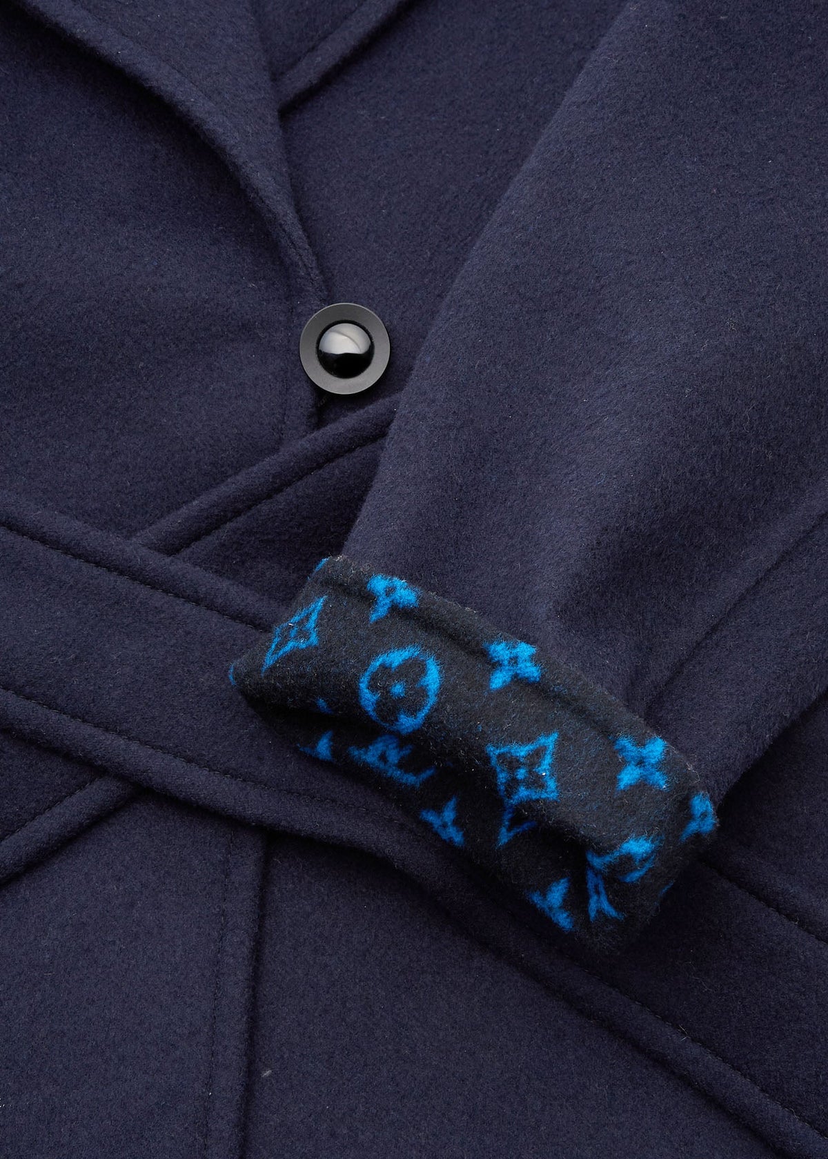 Gebrauchter Vuitton Gown Coat, Monogramm, Woll-Seiden-Mischung, Marineblau, silberfarbene Hardware, Gebraucht