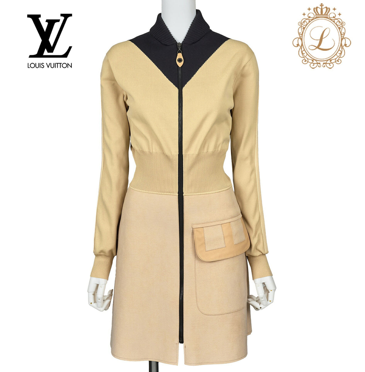 Umarmen Sie Eleganz – fügen Sie Ihrer Sammlung noch heute das LOUIS VUITTON Louis Vuitton Monogram Knit Dress Long Sleeve Skirt 34 Beige hinzu und definieren Sie Ihren Stil mit einem Hauch von Luxus neu.
