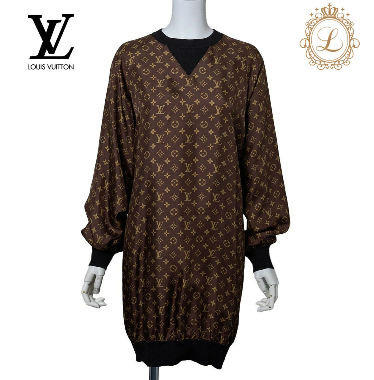 Gebrauchtes Vuitton Langarm-Einteiler-Top, Monogramm, Seidenmischung, Braun, Goldfarbene Hardware, Gebraucht