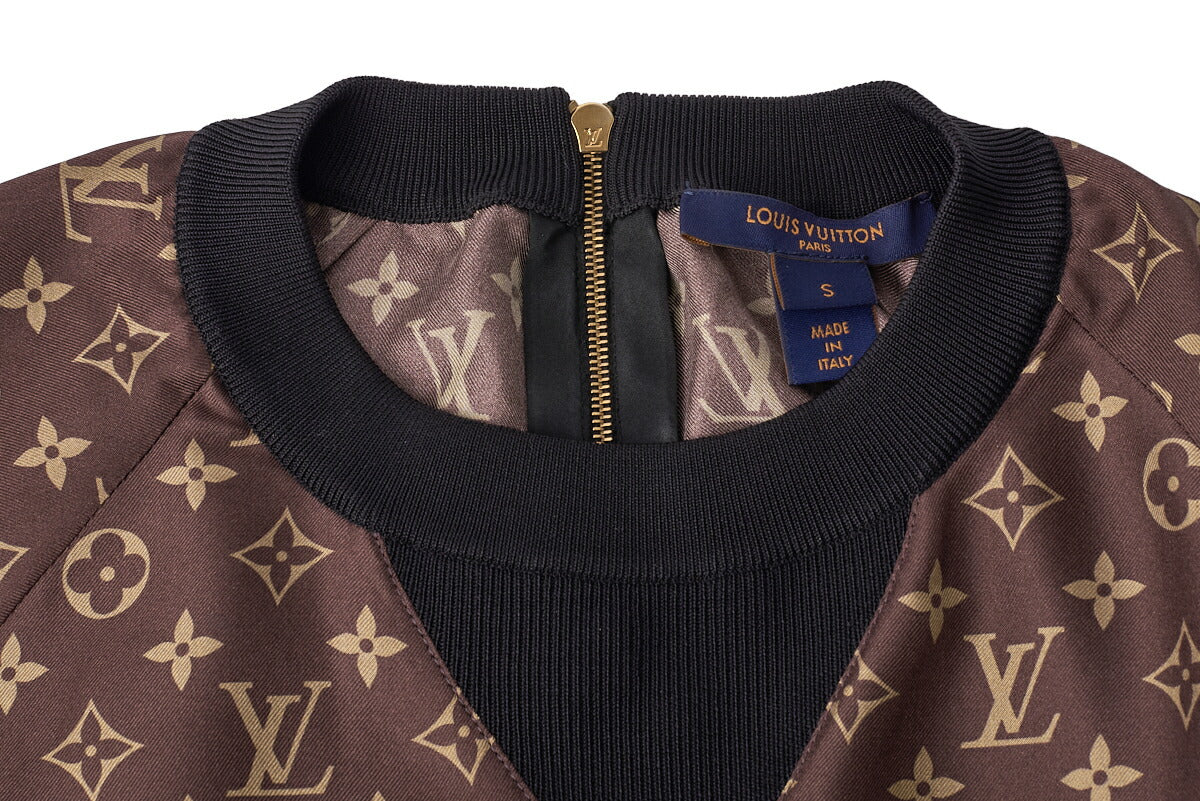 Werten Sie Ihre Garderobe mit dem LOUIS VUITTON Monogram Langarm-Einteiler-Rock in sattem Braun auf. Hergestellt aus einer luxuriösen Mischung aus 68 % Seide, 24 % Nylon und 8 % Polyurethan , vereint dieses exquisite Stück Komfort und Stil nahtlos und ist somit eine unverzichtbare Ergänzung für jede zukunftsweisende Kollektion.