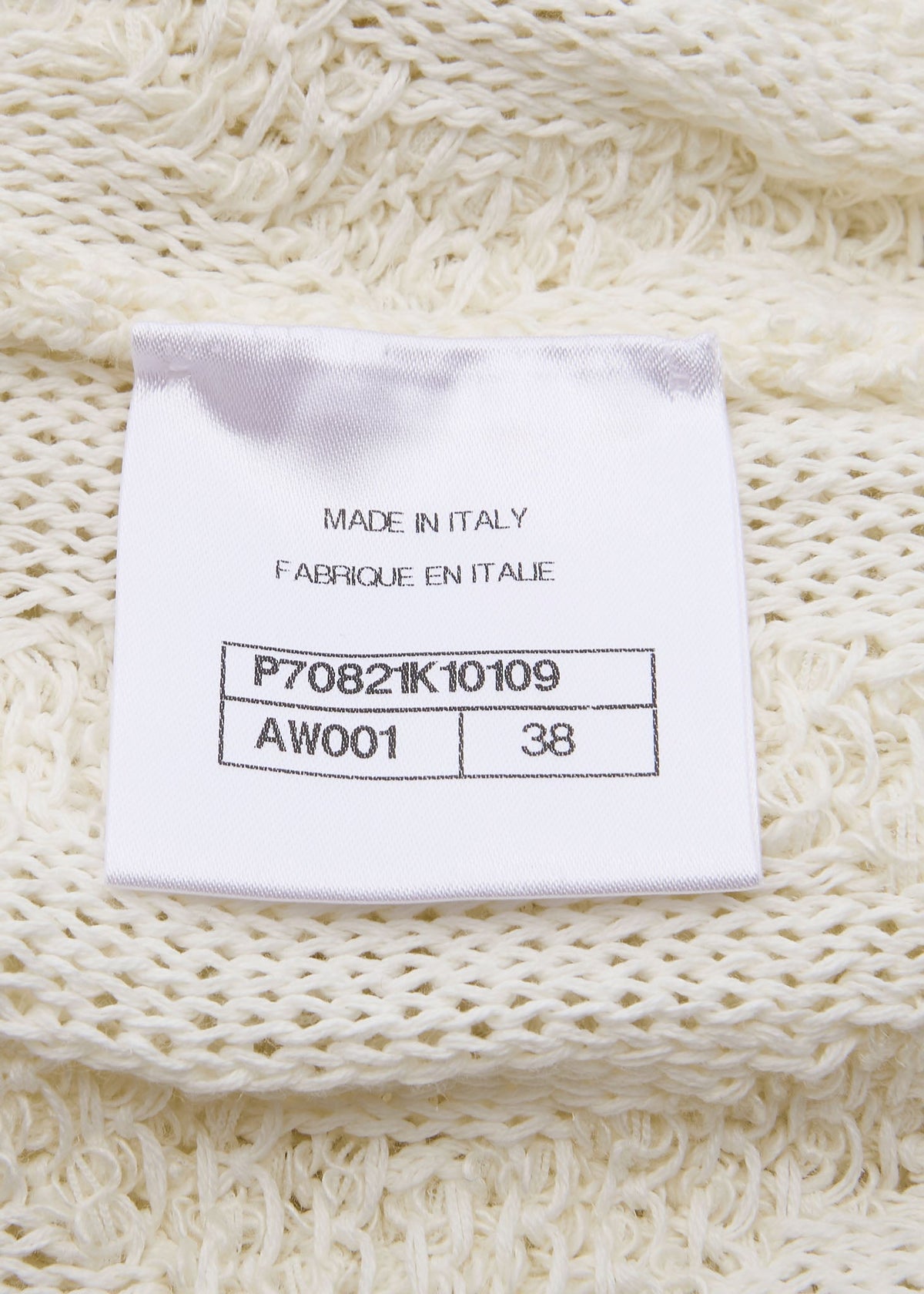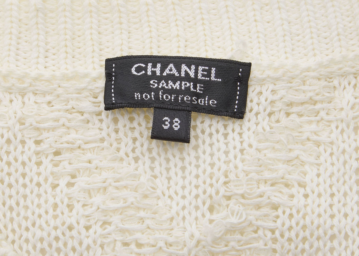 Treten Sie ein in zeitlose Eleganz mit der CHANEL Chanel No5 Knitted Vest 38 Ivory Tops Camisole Sleeveless T-Shirt Brand Apparel . Diese exquisite Weste aus einer luxuriösen Mischung aus 56 % Baumwolle, 32 % Hanf und 11 % Polyamid bietet sowohl Komfort als auch Raffinesse, perfekt für jeden Anlass.