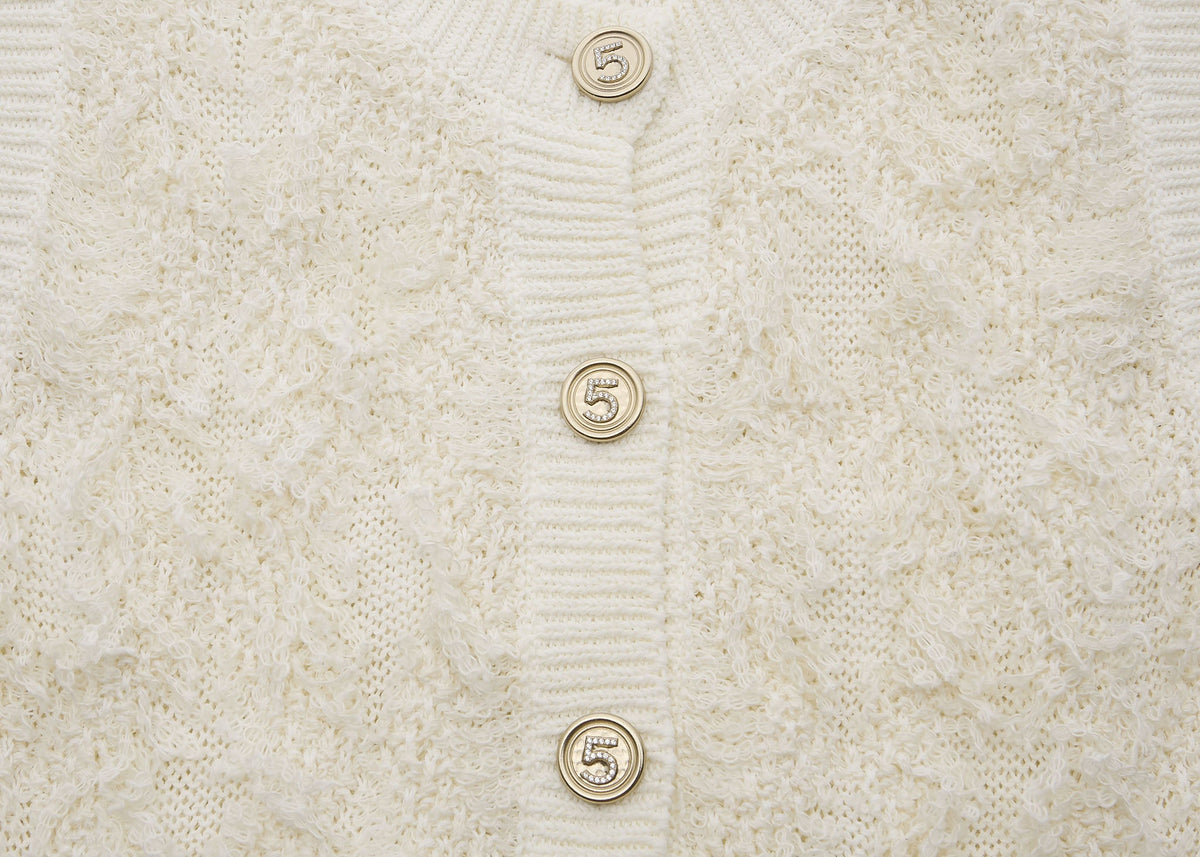 Ob unter einem Blazer für einen eleganten Büro-Look oder solo für einen lässigen Ausflug – die CHANEL No5 Strickweste strahlt Selbstbewusstsein und Stil aus. Verpassen Sie nicht die Chance, dieses atemberaubende Luxus-Kleidungsstück zu ergattern!