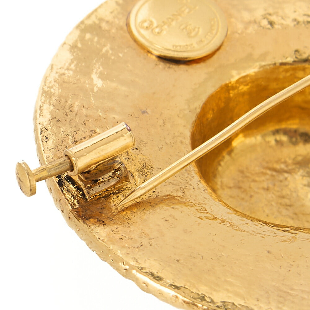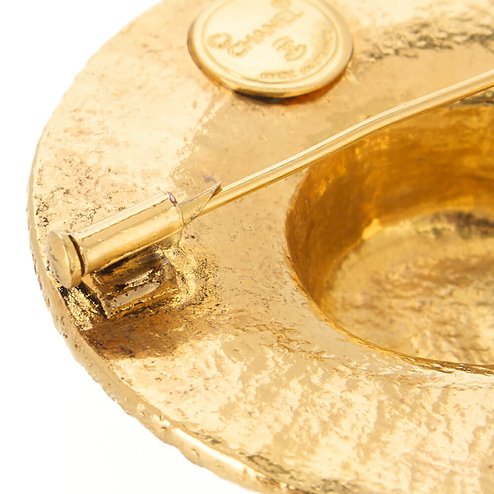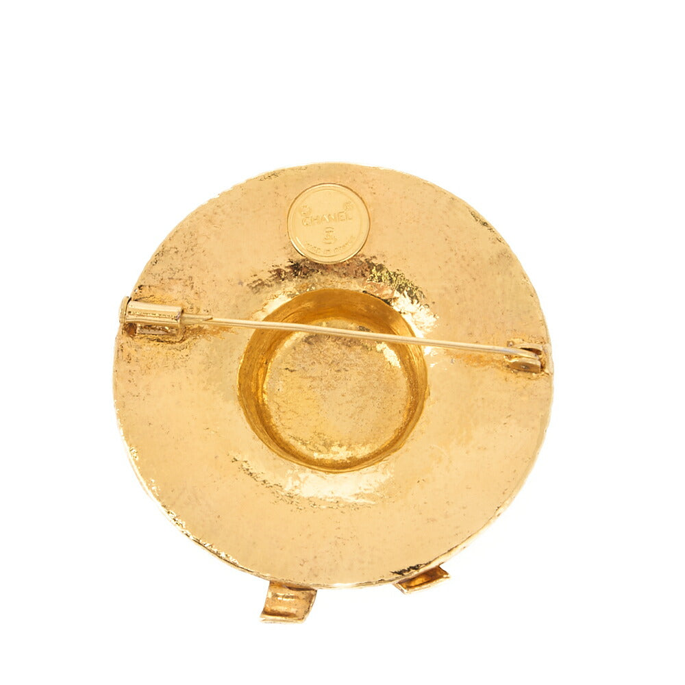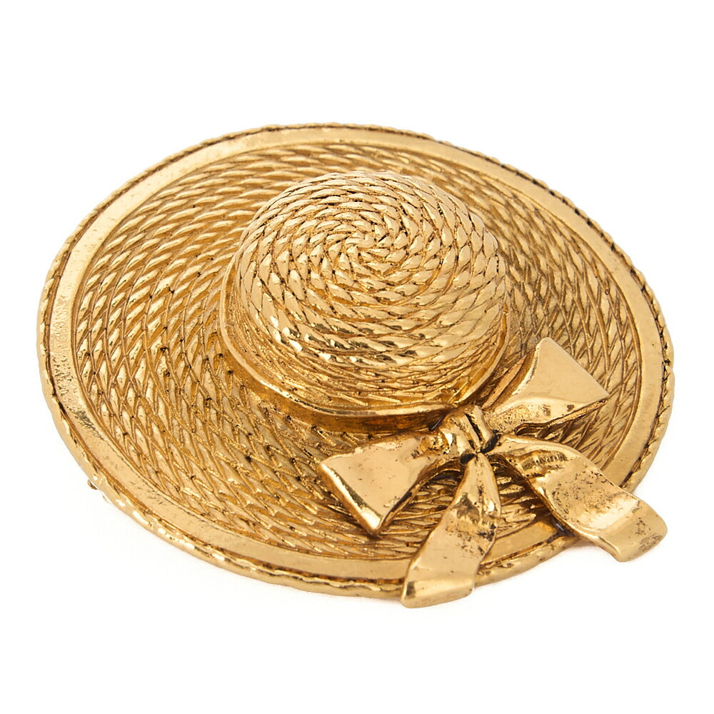 Pre-Owned Straw Pattern Hat Brooch Gold-Tone Hardware, Pre-Owned
