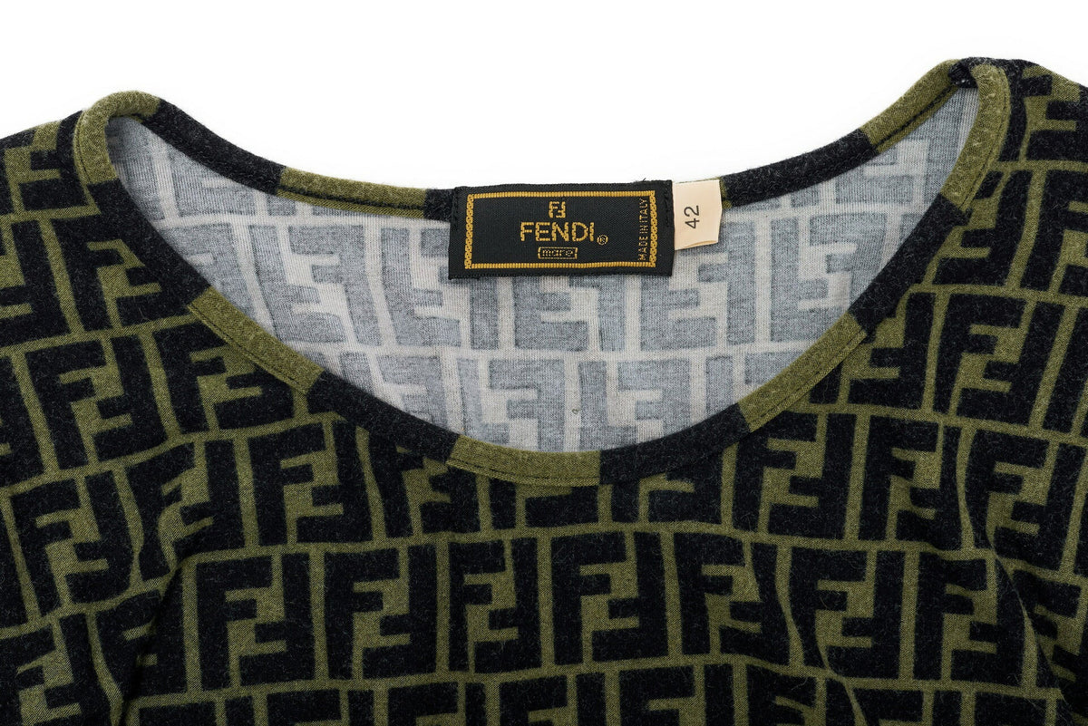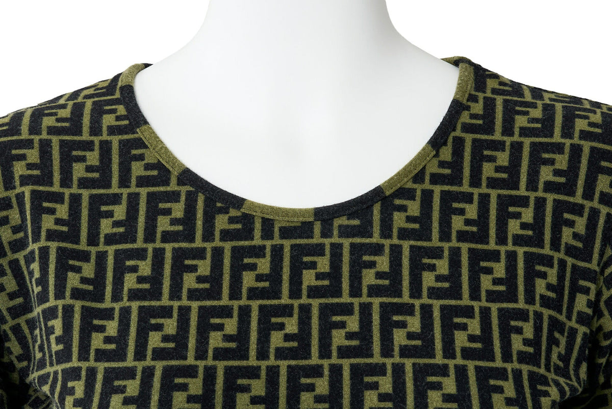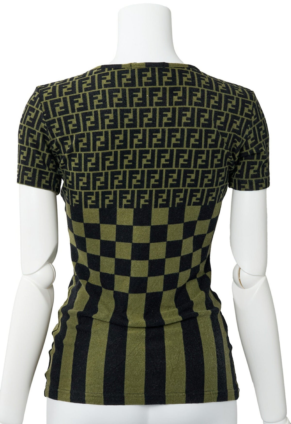 Dieses gebrauchte Stück ist in gutem Zustand mit minimalen Gebrauchsspuren und somit eine nachhaltige Wahl für Modeliebhaber. Mit seinem klassischen Design und dem hochwertigen Material ist das FENDI Zucca T-Shirt perfekt für jeden Anlass, egal ob Sie sich für eine Veranstaltung schick machen oder einen entspannten Tag genießen.