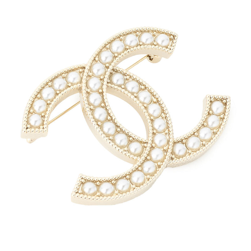 Gebrauchte Brosche Coco Mark Perle Vergoldet Gold Gebraucht