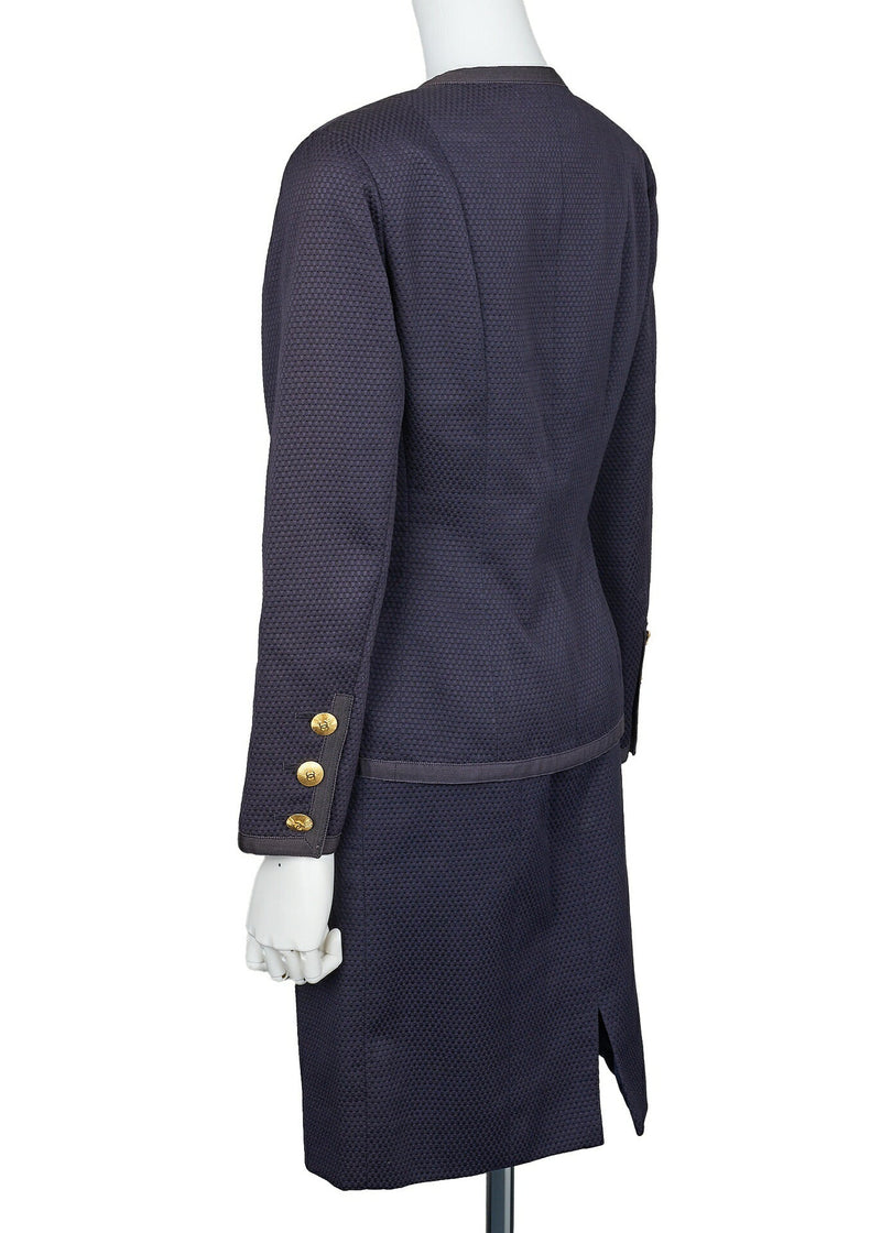Gebrauchtes Jacken-Rock-Set, Coco-Knopf, Baumwolle, Marineblau, goldfarbene Metallteile, gebraucht
