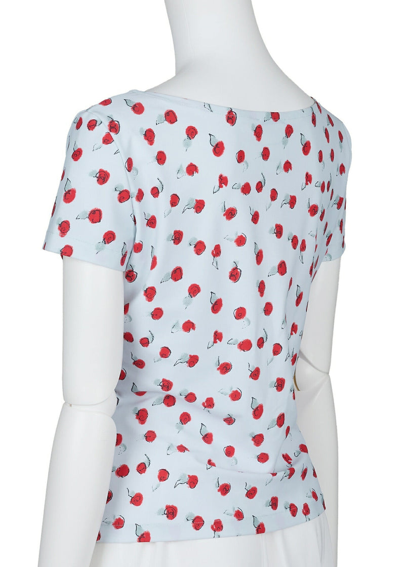 Gebrauchtes T-Shirt, Kurzarm, Schnittmuster, Baumwolle, Hellblau, Silberfarbene Metallteile, Gebraucht