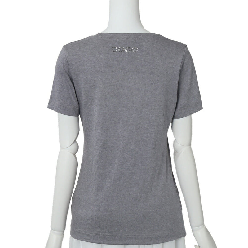 Gebrauchtes T-Shirt Kurzarm Cut-and-Sew Grau Goldfarbene Hardware Gebraucht