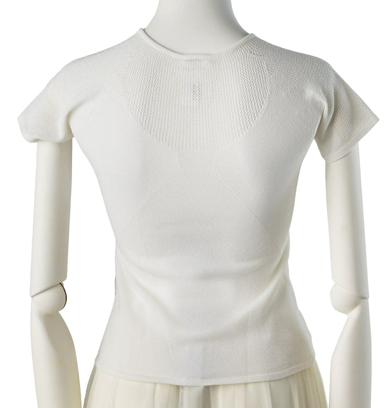 Pre-Owned Stricktop, Coco Mark, Kurzarm, Viskose, Weiß, Goldfarbene Metallteile, Pre-Owned