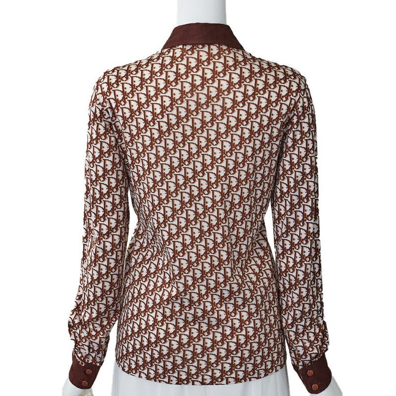 Pre-Owned Trotter Hemd Bluse Langarm Baumwolle Weiß Braun Goldfarbene Hardware Pre-Owned