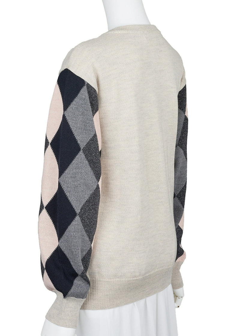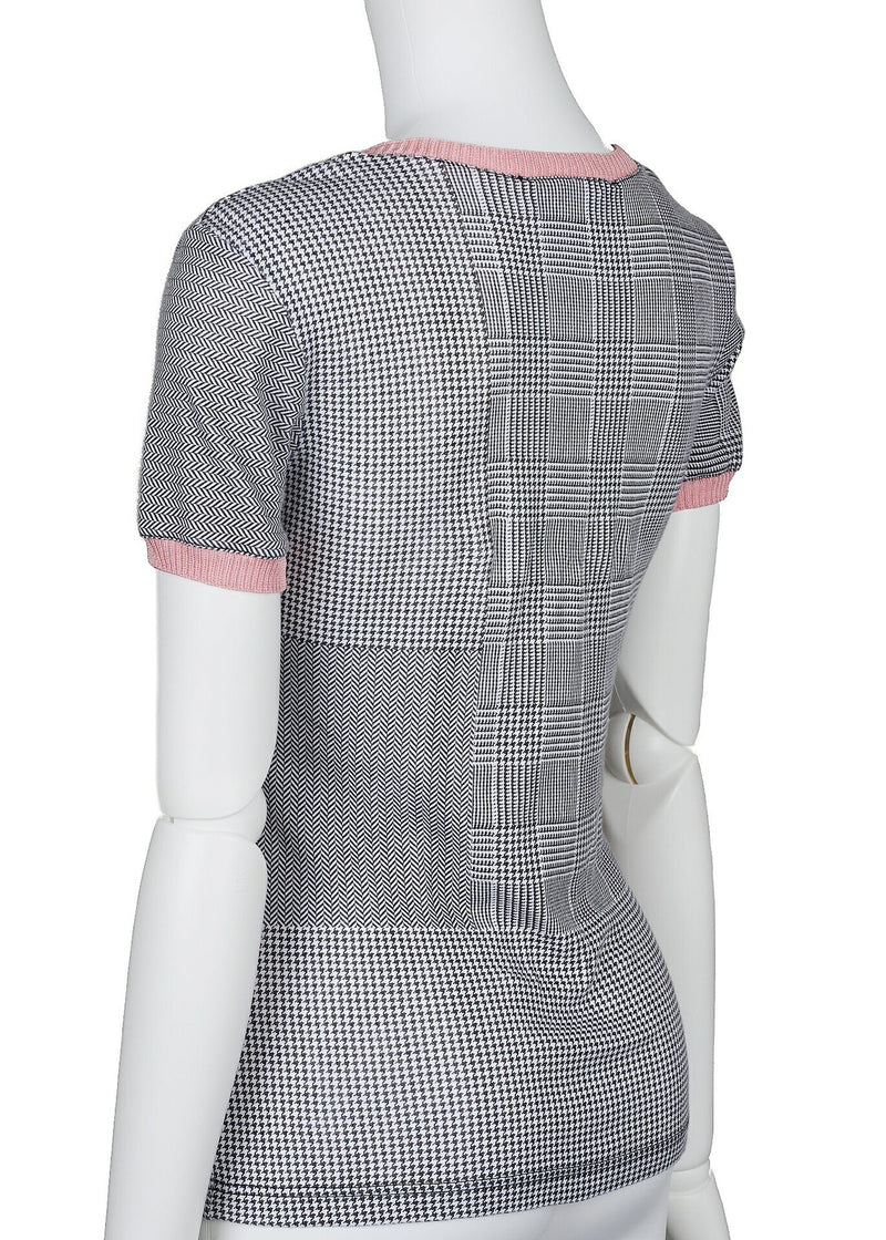 Pre-Owned All-Over Cashmere Sweater 36 White x Black Knit Top Long Sleeve Cut & Sew Branded Pre-Owned