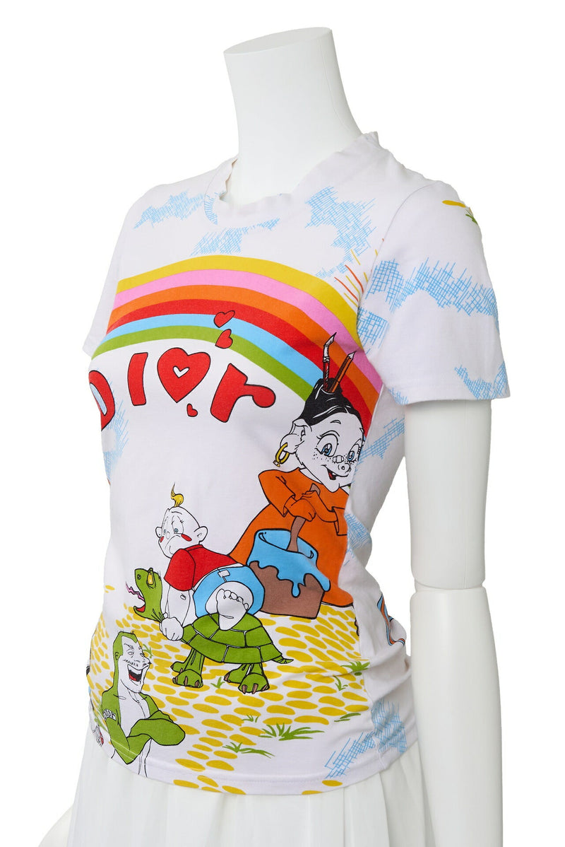 Pre-Owned T-Shirt Kurzarm Cut-and-Sew Baumwolle Weiß Mehrfarbig Goldfarbene Hardware Pre-Owned