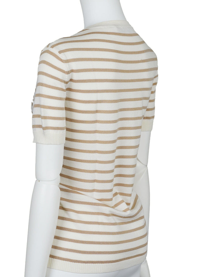 Pre-Owned T-Shirt Cut-and-Sew Kurzarm-Top, Seide, Elfenbein, goldfarbene Metallteile, Pre-Owned
