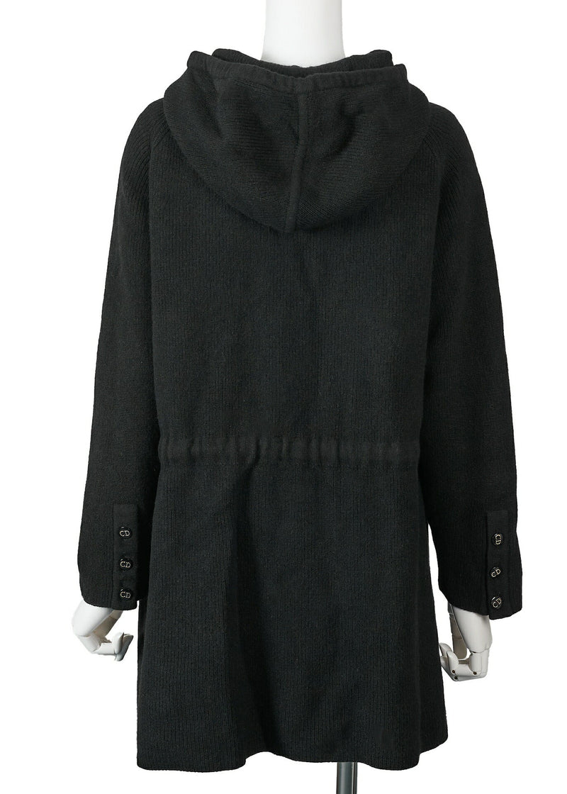 Pre-Owned Kapuzen-Cardigan, Gilogo-Knopf, Strick, Wolle, Schwarz, silberfarbene Metallteile, Pre-Owned