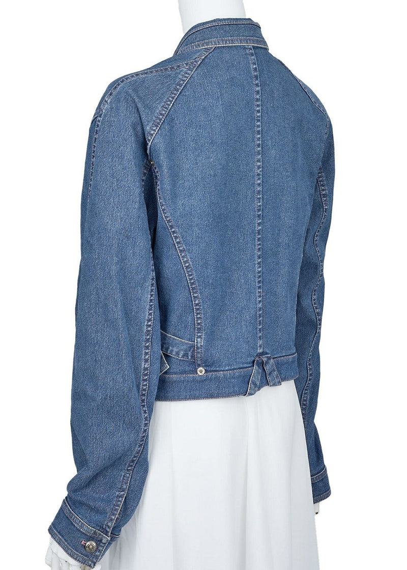 Gebrauchte Jeansjacke, Logoknopf, Langarm, Baumwolle, Blau, Silberfarbene Hardware, Gebraucht