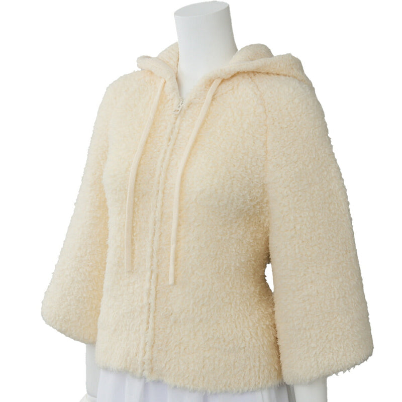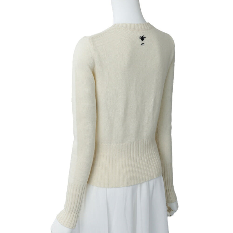 Pre-Owned Hoodie Knit Top, J'ADIOR 8 Jadiol Logo, Woll-Nylon-Mischung, Elfenbein, silberfarbene Hardware, Pre-Owned