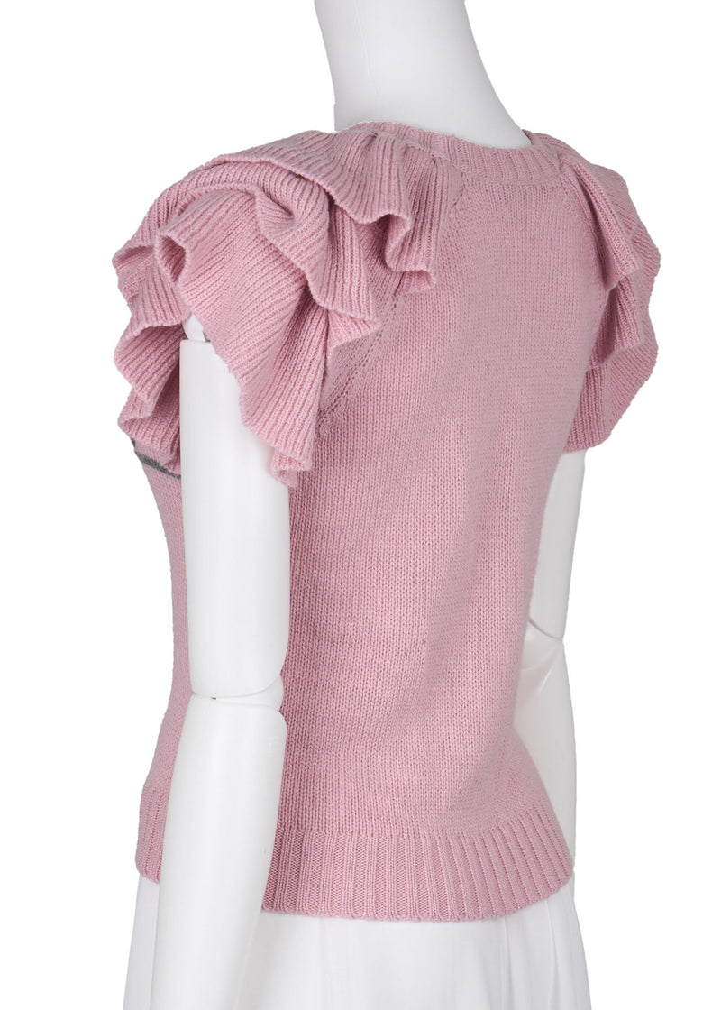 Pre-Owned T-Shirt Ärmellos Cut-and-Sew Baumwolle Pink Goldfarbene Metallteile Pre-Owned