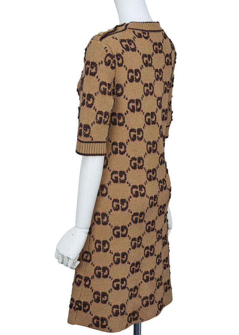 Gebrauchter einteiliger Top-Rock, Logo-Markierung, Strick, Wolle, Braun, goldfarbene Hardware, Gebraucht